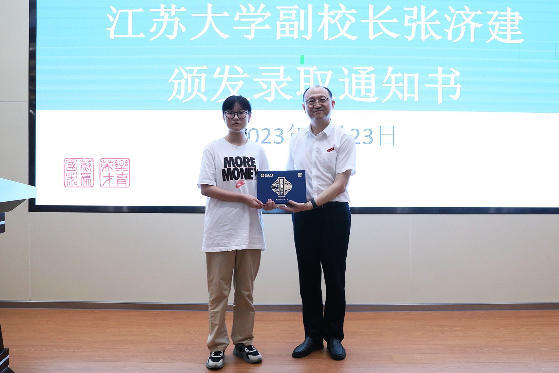 25日上午,邢卫红来到江苏省镇江第一中学发放录取通知书,为41名江南网页版官网2023级新生发放录取通知书。