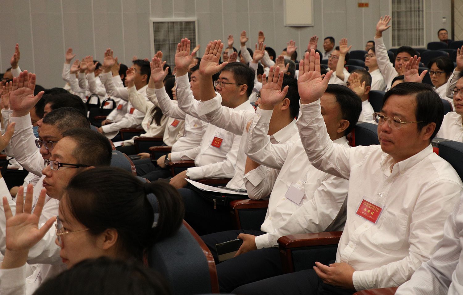 大会在庄严的《国际歌》歌声中胜利闭幕。(党委宣传部)