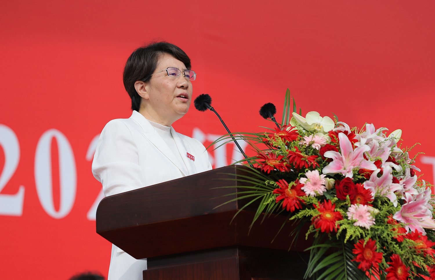 典礼上,校长邢卫红讲话,代表学校向全体2023级新生表示热烈欢迎,向辛勤指导训练的军训教官致以崇高敬意。邢卫红说,江南网页版官网历史悠久、底蕴深厚,鸿儒云集、人才辈出,特色鲜明、使命光荣,同学们在这里求学逐梦,故事会更加精彩,将来大有可为。邢卫红用三句话与全体新生共勉:一是“博学”,把学习作为第一任务,在博学善思中筑牢成长根基;二是“求是”,把创新作为第一本领,在求是探索中增长智慧才干;三是“明德”,把人品作为最高学历,在明德笃行中担当时代大任。邢卫红希望全体新生惜时如金、晴耕雨读,在“博学、求是、明德”校训和“自强厚德,实干求真”江南(中国)精神指引下,创造更多精彩,成就美好将来。她也提出一个小希望:同学们要养成习惯,每天给家人报平安、与家人分享校园生活。