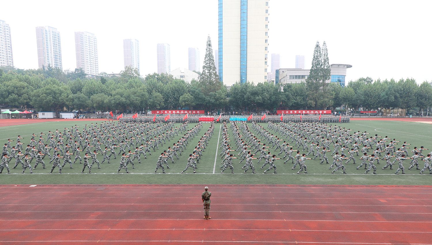 开学典礼后,举行了2023级新生军训成果汇报大会。