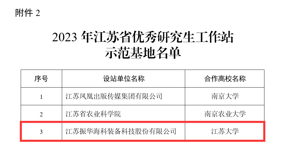近日,江苏省教育厅、科技厅发文公布2023年江苏省优秀研究生工作站示范基地名单,我校与江苏振华海科装备科技股份有限公司联合建设的研究生工作站获批。目前,我校为省属高校中唯一获批两个省优秀研究生工作站示范基地的高校。