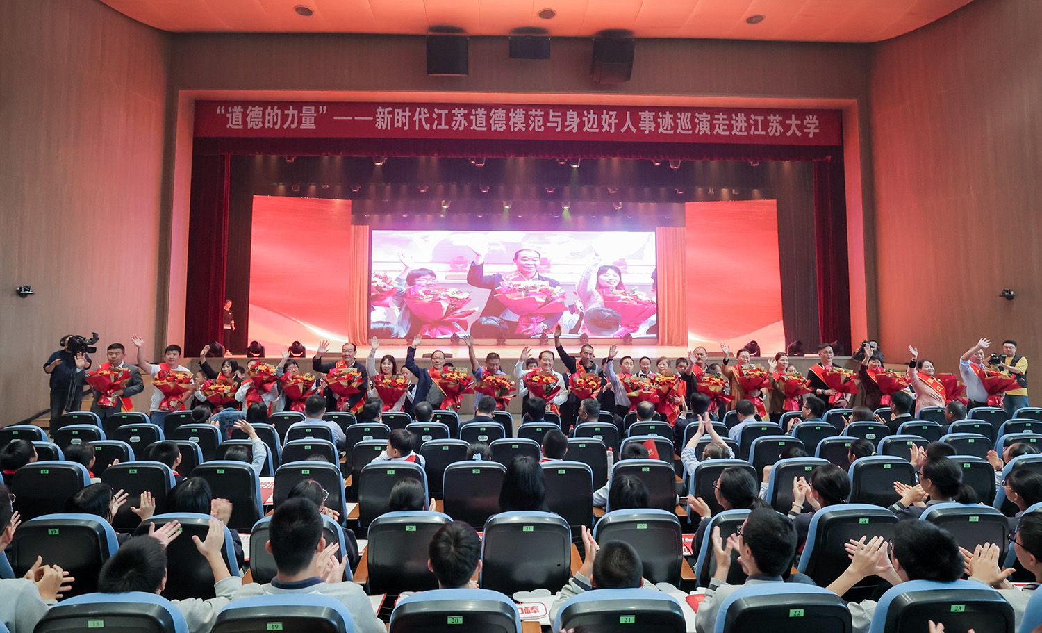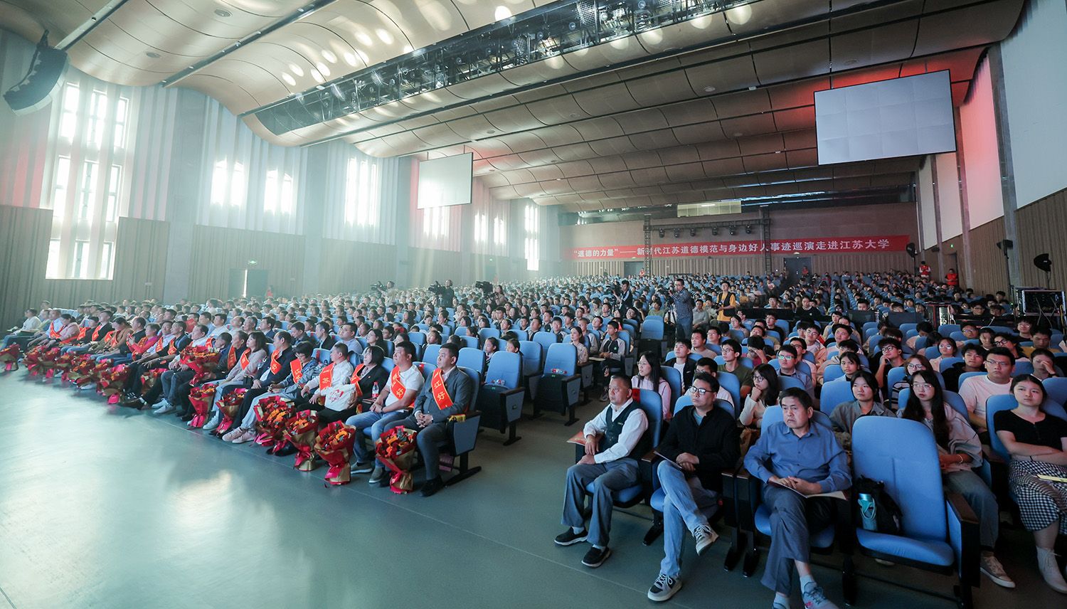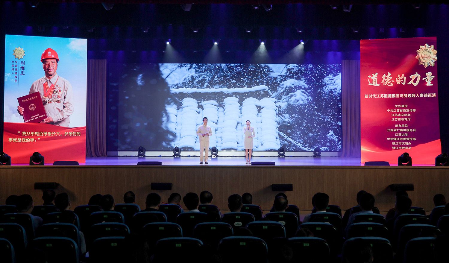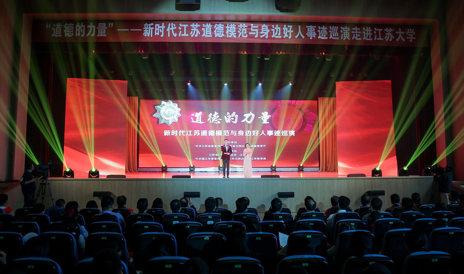 10月25日,由中共江苏省委宣传部、江苏省文明办、江苏省教育厅主办,江苏省广播电视总台、江南网页版官网、中共镇江市委宣传部、镇江市文明办、镇江市教育局承办的“道德的力量”——新时代江苏道德模范与身边好人事迹高校巡演走进我校。