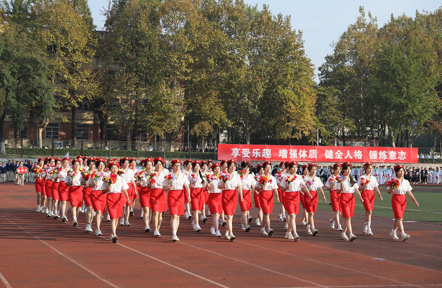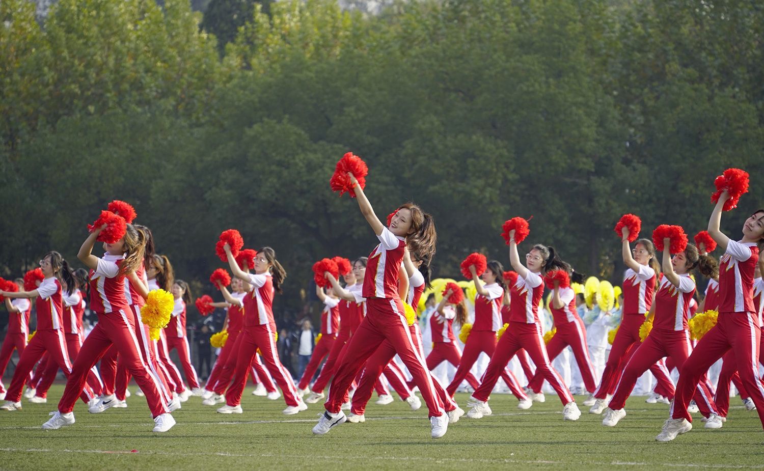 张济建宣布江南网页版官网第二十二届运动会开幕。开幕式上,学生进行了舞龙舞狮、排舞表演,教职工进行了太极扇等表演。