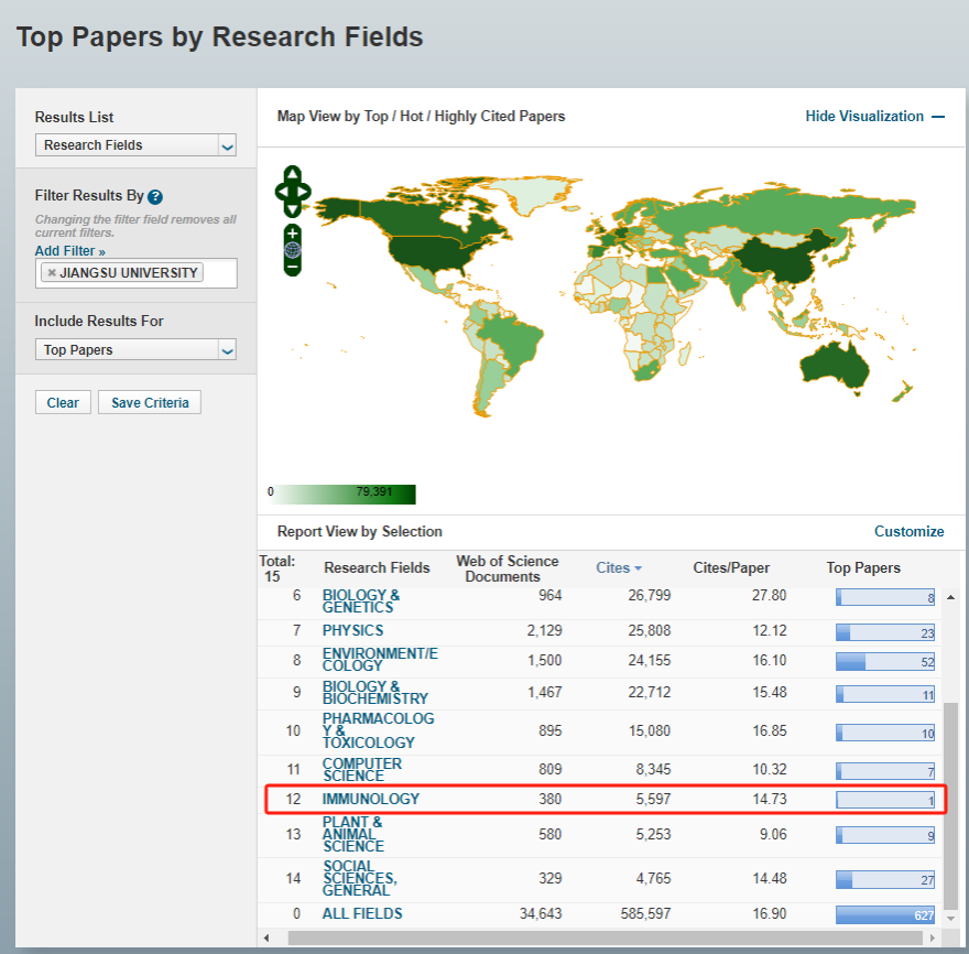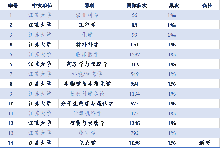近日,科睿唯安发布了最新ESI数据,全球共有8917家科研机构上榜,其中包含432所中国内地高校。数据显示,江南网页版官网免疫学学科首次进入ESI全球排名前1%。截至目前,我校进入ESI全球前1%的学科数达14个,其中工程学、化学、农业科学3个学科排名前1‰。