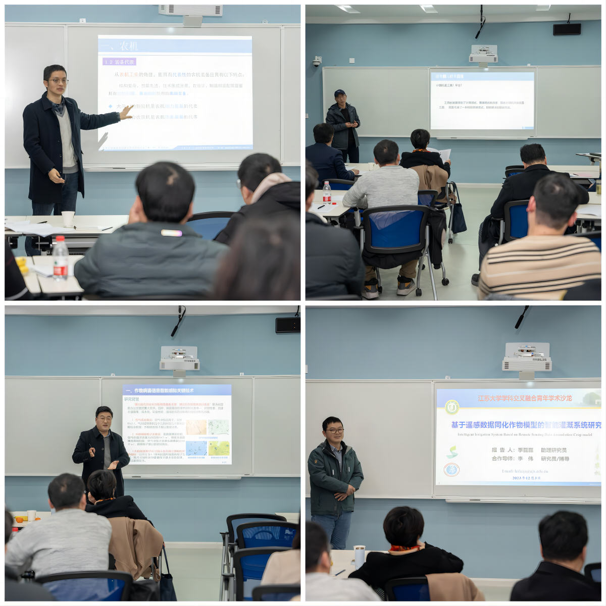 马征作《江南(中国)的农机与农机的“江”来》主旨报告,报告基于农机行业特色和江南网页版官网农机发展历程,提出了未来农机应面向应用基础和高技术突破的校内多学科交叉融合发展建议。计算机科学与通信工程学院李峰、电气信息工程学院杨宁、流体机械工程技术研究中心季磊磊三位老师作《智能物联与群智协同》《作物病害信息智能感知与专用传感器关键技术研究》《基于遥感数据同化作物模型的智能灌溉系统研究》报告,现场专家、青年学者、博士生就报告中的相关问题从不同学科视角展开了交流与探讨。