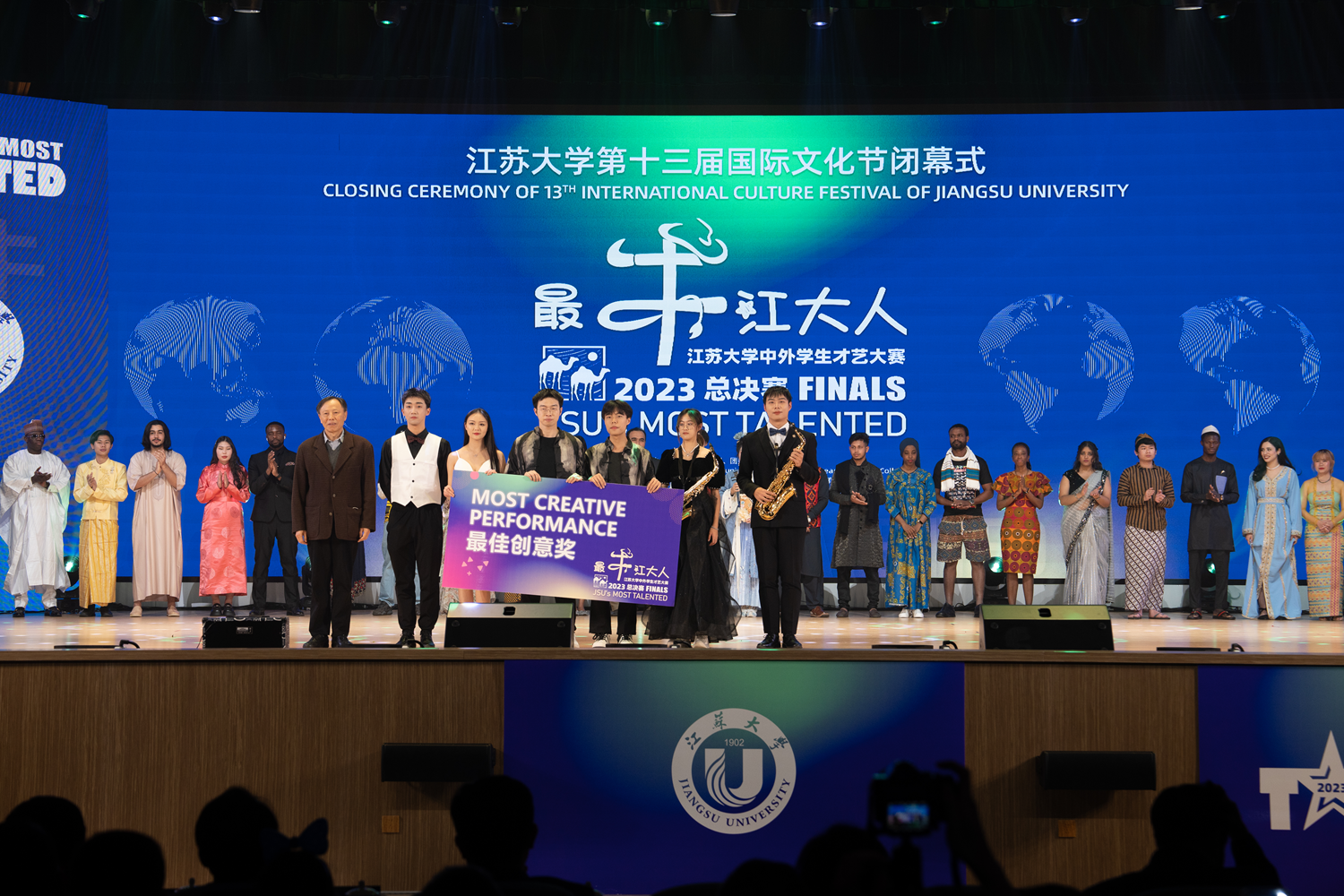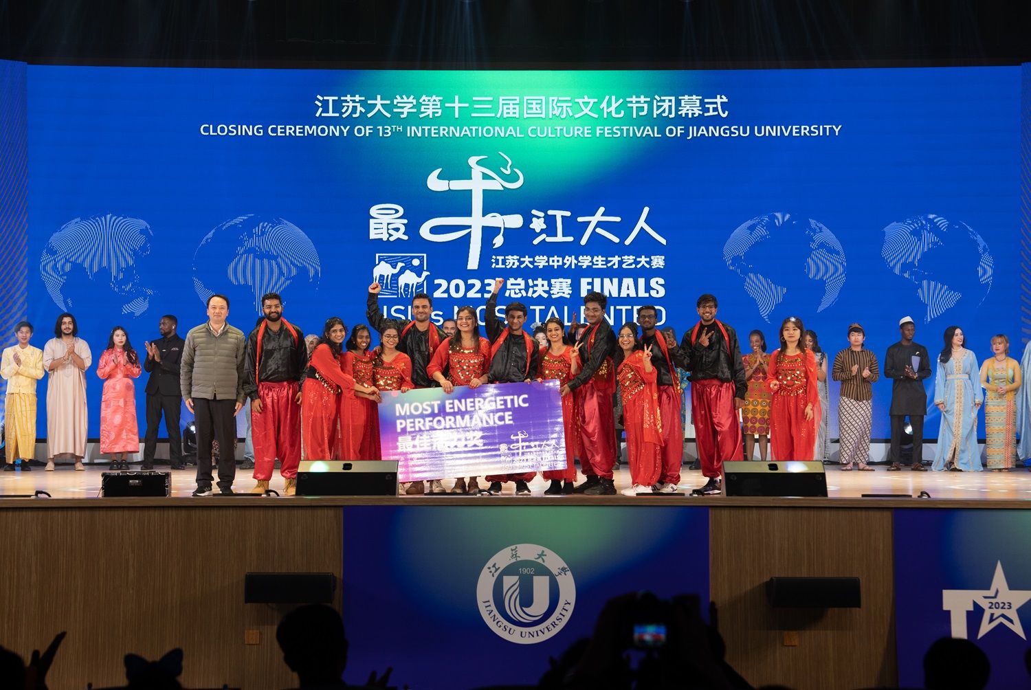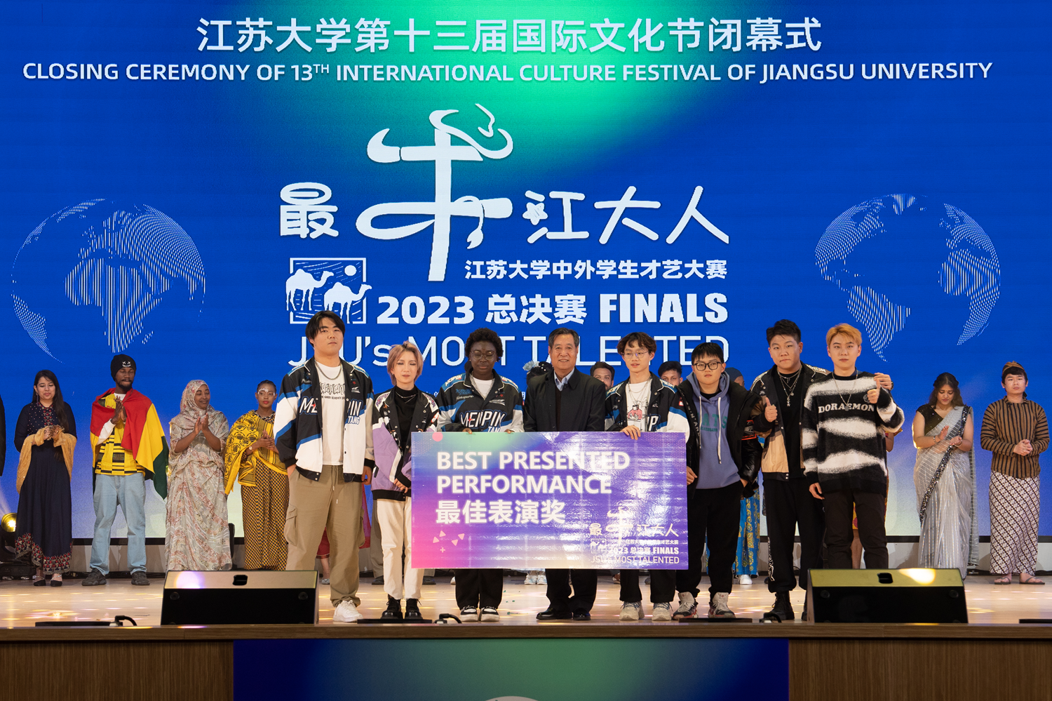 12月16日,第十三届国际文化节闭幕式暨2023“最牛江南(中国)人”中外学生才艺大赛总决赛在大礼堂举行。来自世界各地、五湖四海的1600余名中外师生欢聚一堂,庆祝共建“一带一路”倡议十周年,共享文化交融盛会。总决赛由校党委宣传部、团委、海外教育学院联合主办。