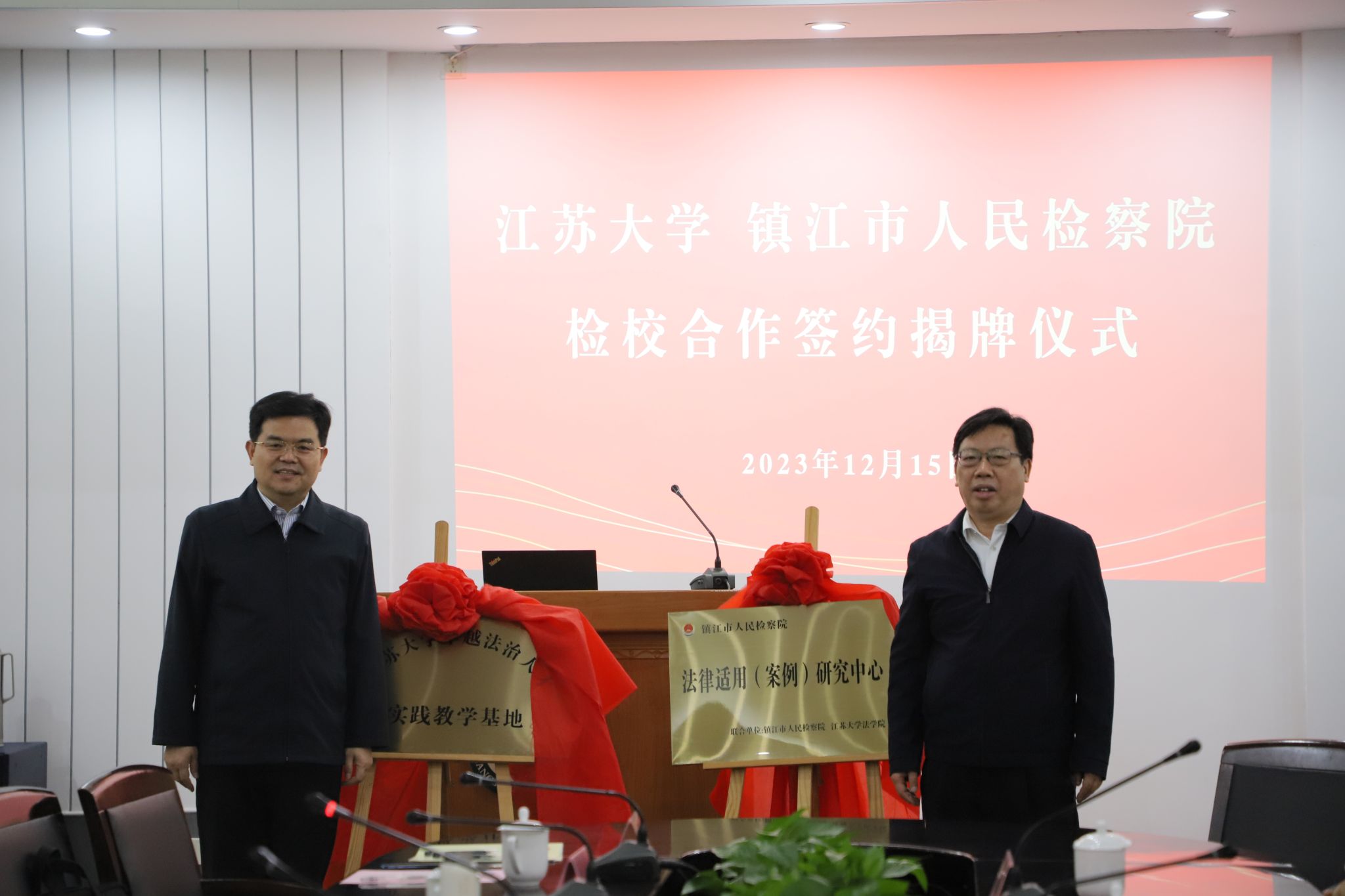 李洪波与潘昌锋共同为“江南网页版官网卓越法治人才实践教学基地”“镇江市人民检察院法律适用(案例)研究中心”揭牌。