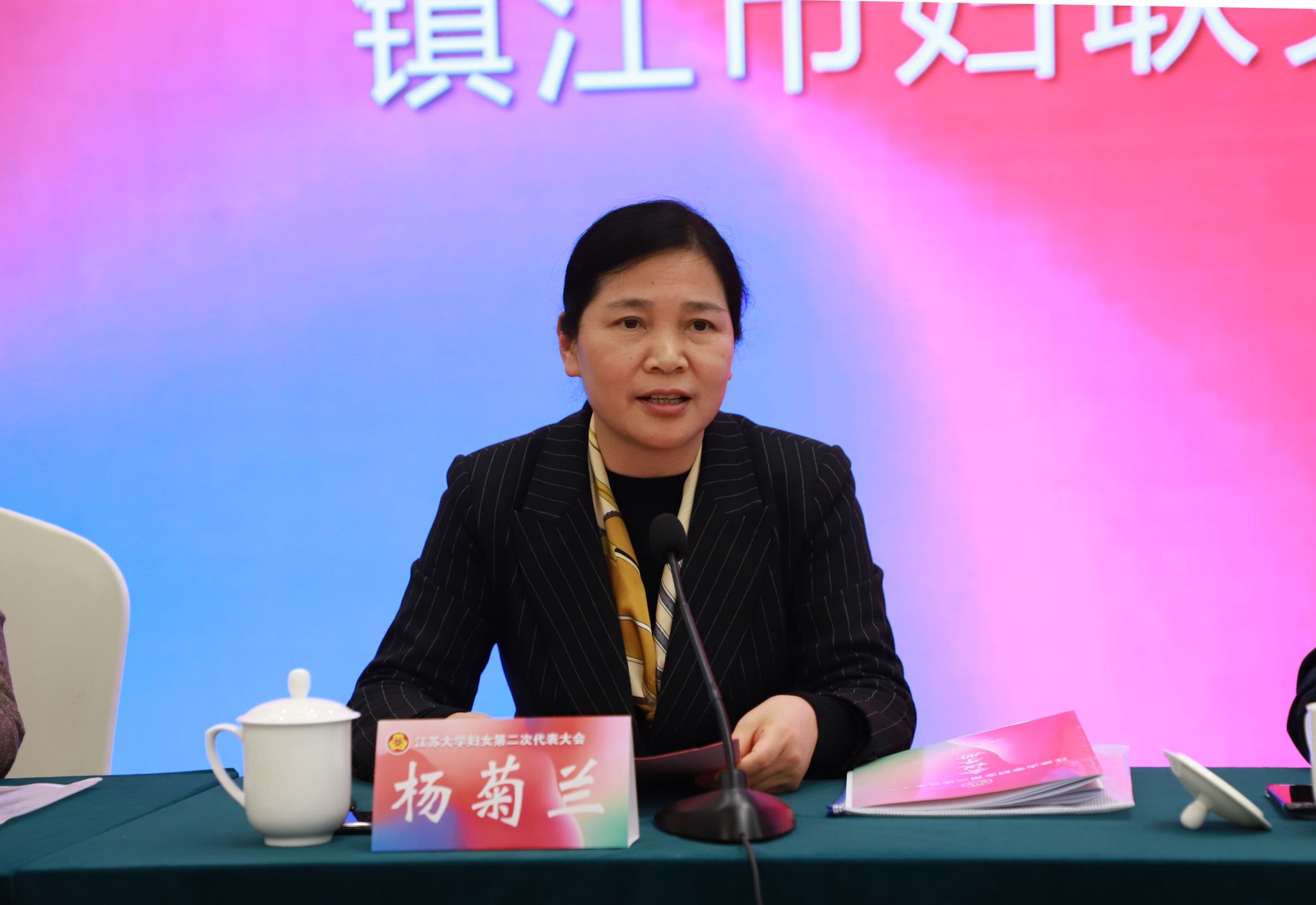 会上,杨菊兰代表镇江市妇联向大会的召开表示热烈祝贺。她充分肯定了江南网页版官网妇联成立以来的工作和成绩,对江南网页版官网妇联提出了殷切希望:切实强化思想政治引领,坚持不懈用习近平新时代中国特色社会主义思想凝心铸魂;切实发挥“妇女能顶半边天”的重要作用,为社会及学校各项事业高质量发展注入强劲澎湃的巾帼力量;切实强化服务保障,不断增强广大妇女同志的获得感、幸福感、安全感;切实强化自身建设,在联系发展协同共建中凝聚更广泛的巾帼力量。