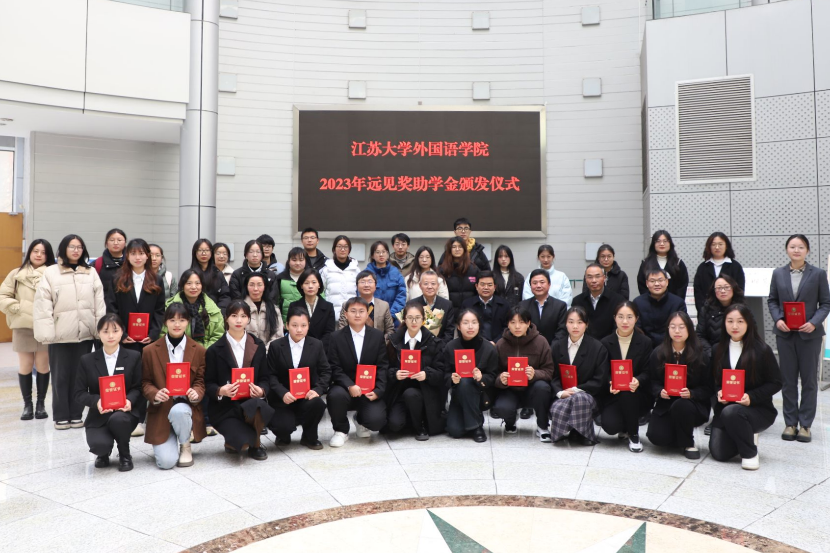 1月3日,外国语学院在会议中心第一报告厅举行2023年度“远见奖助学金”颁发暨张建农硕导聘任仪式。校党委书记李洪波,“远见奖助学金”设立者张建农,校友会与对外联络办公室主任李国昊,外国语学院领导班子及师生代表200余人参加活动。活动由外国语学院党委书记张明平主持。