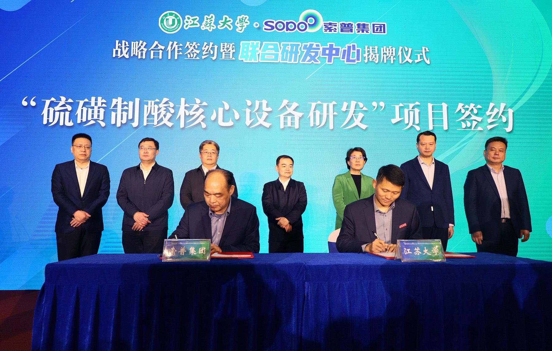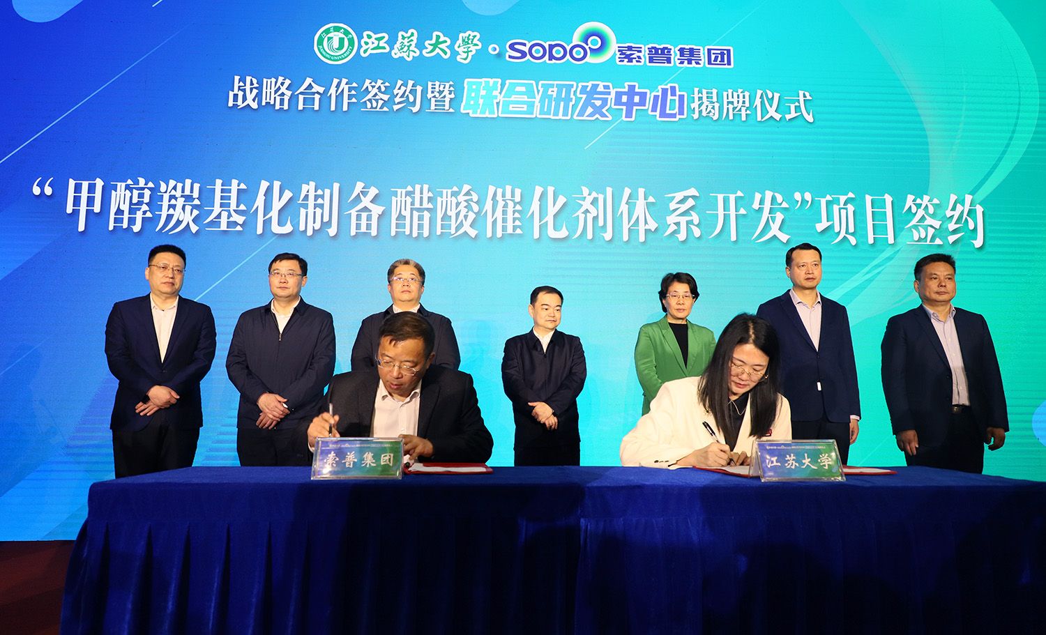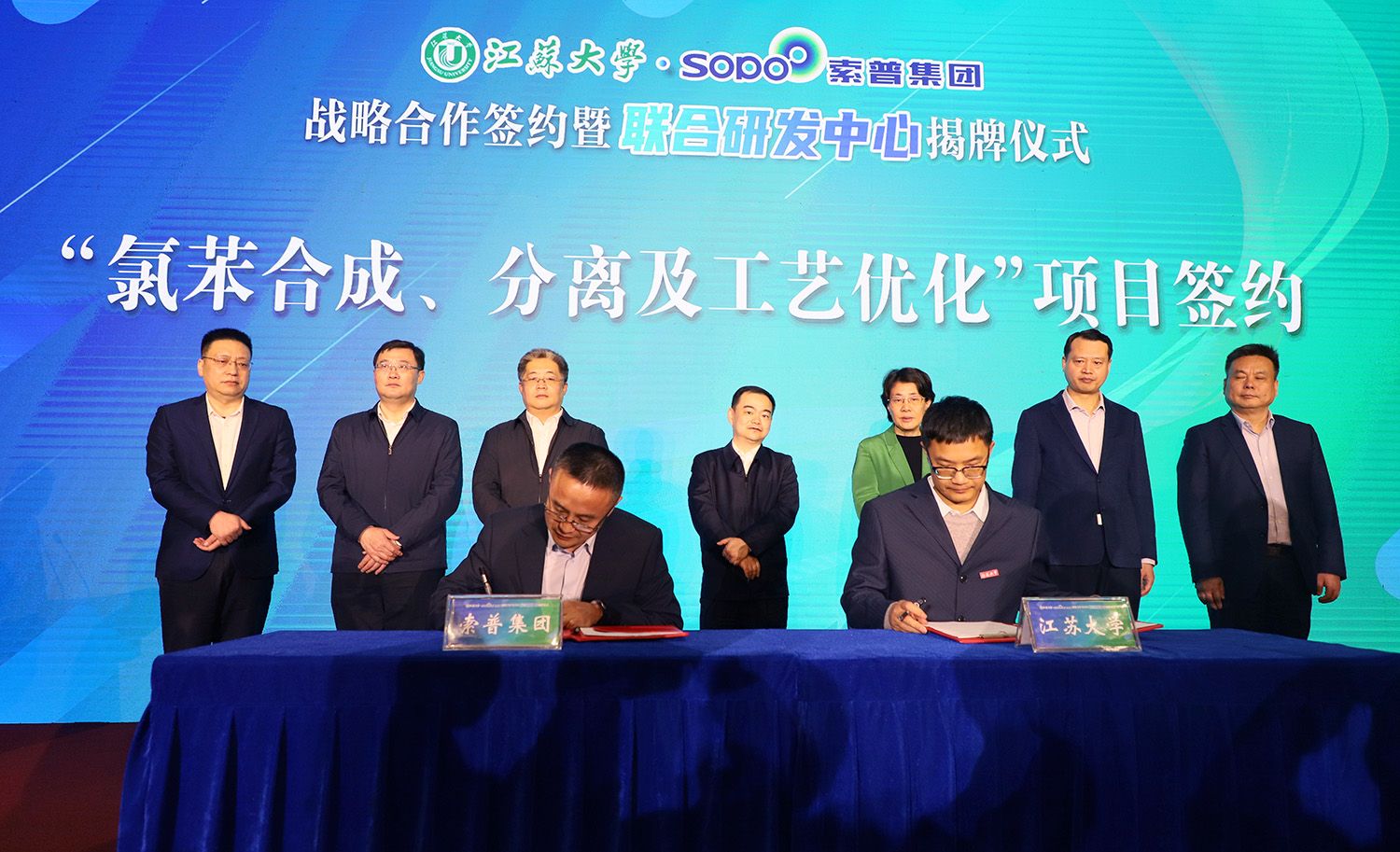 索普集团党委副书记、常务副总经理凌晨,江南网页版官网产学研合作处处长汪少华共同签订江南网页版官网-索普集团联合研发中心协议。