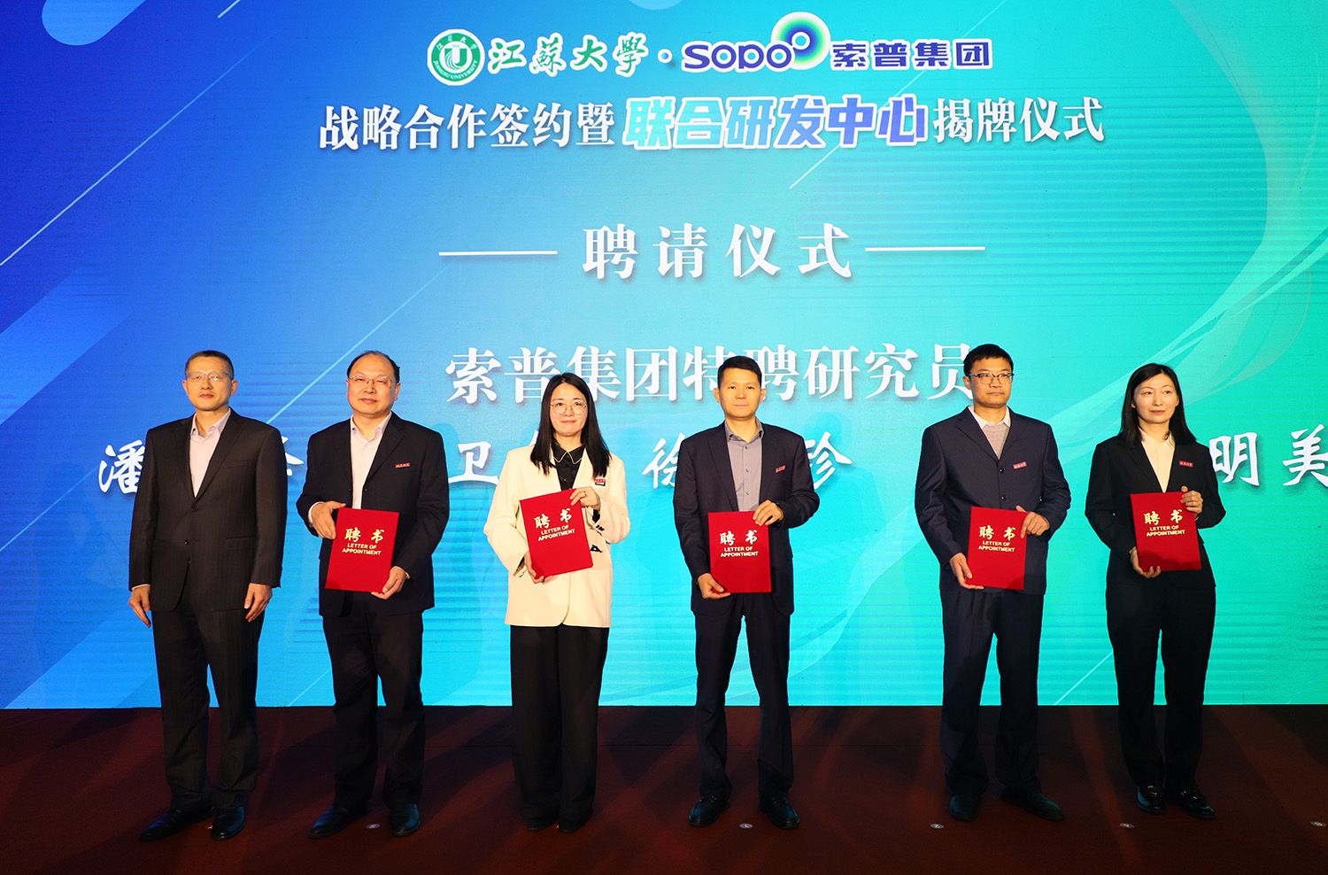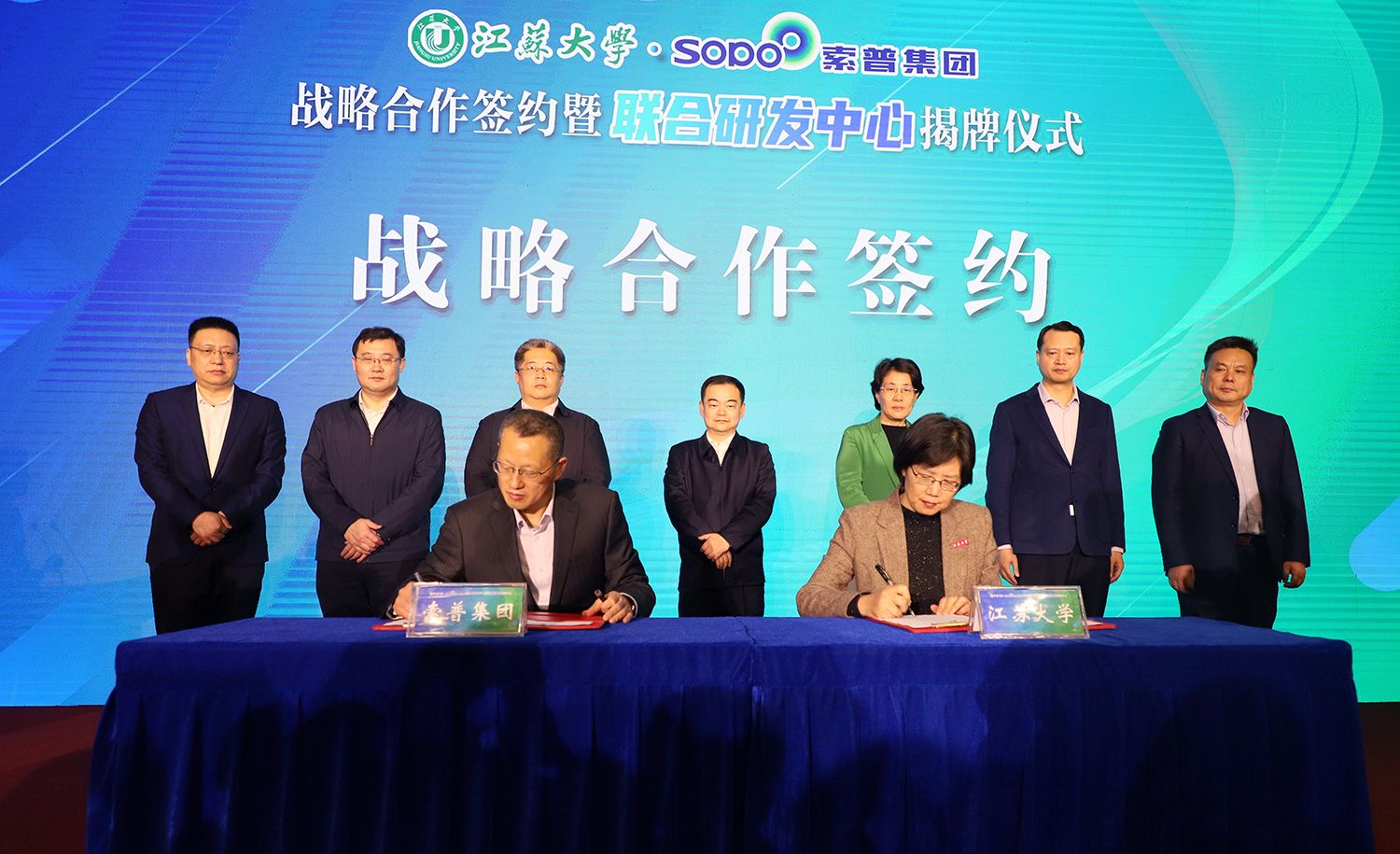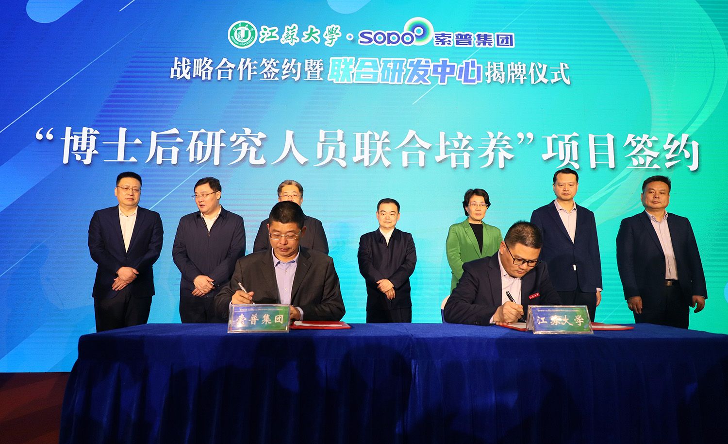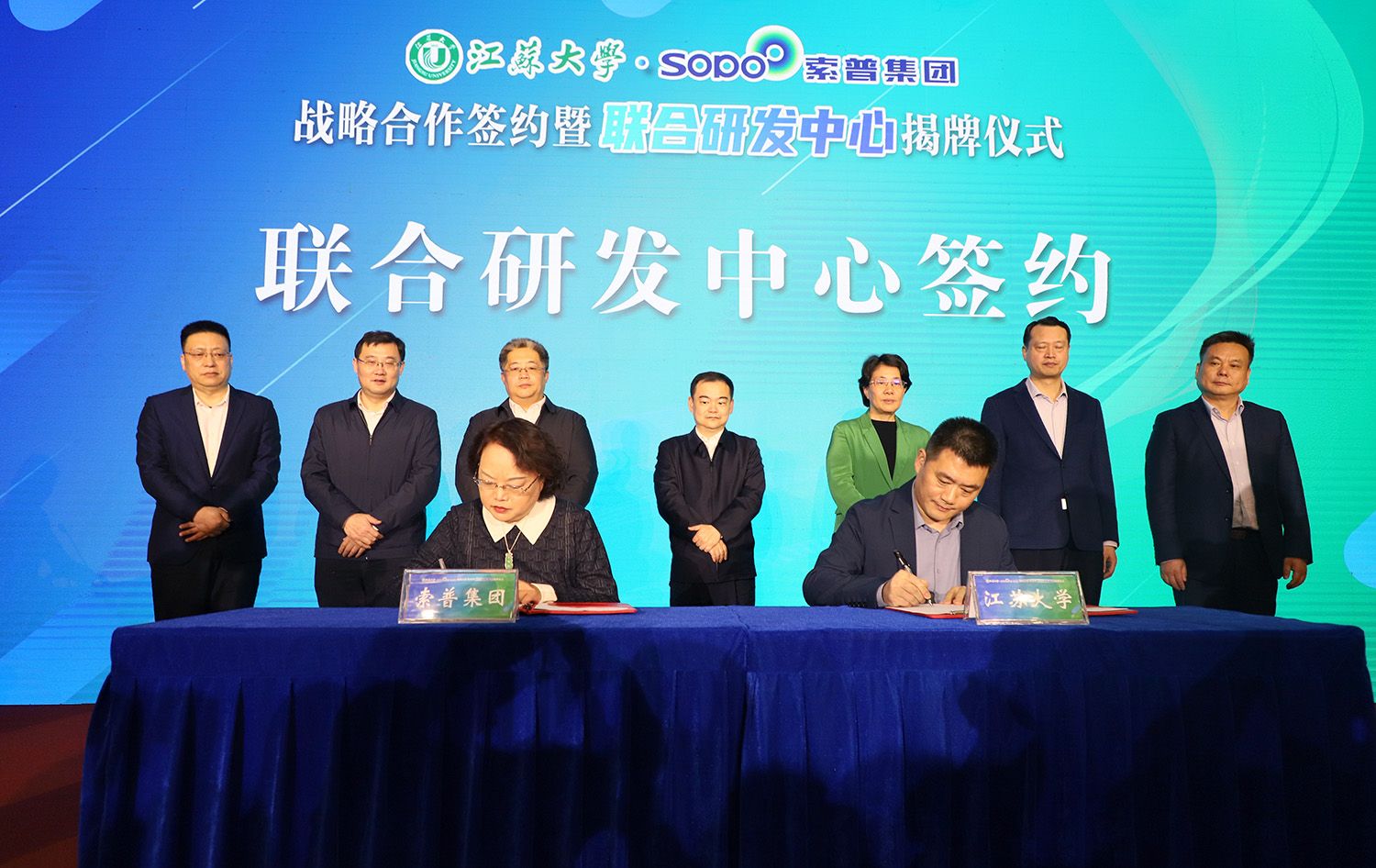 索普集团党委副书记、常务副总经理凌晨,江南网页版官网产学研合作处处长汪少华共同签订江南网页版官网-索普集团联合研发中心协议。