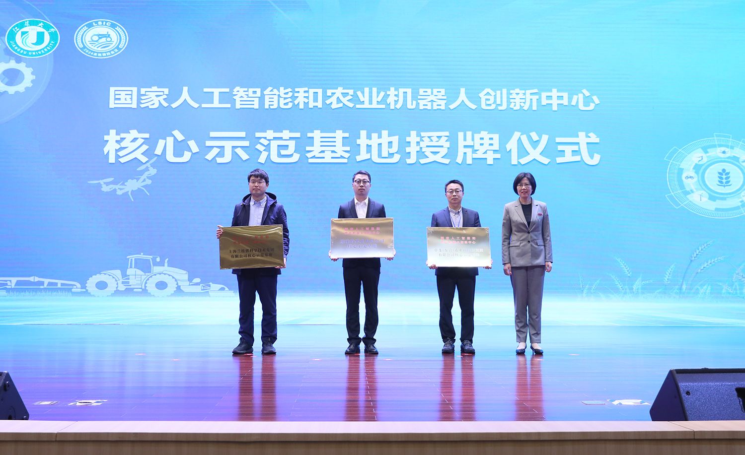 校党委副书记张济建、科东(广州)软件科技有限公司副总经理余湲、上交碳中和动力研究院常务副院长林赫、遨博(北京)智能科技股份有限公司研究院总监宋仲康、江苏集萃智能制造技术研究所有限公司所长骆敏舟共同为“农业机器人操作系统”“非道路发动机电控ECU”“多臂机器人系统”“电液伺服人形机器人灵巧作业”等4个联合实验室揭牌。