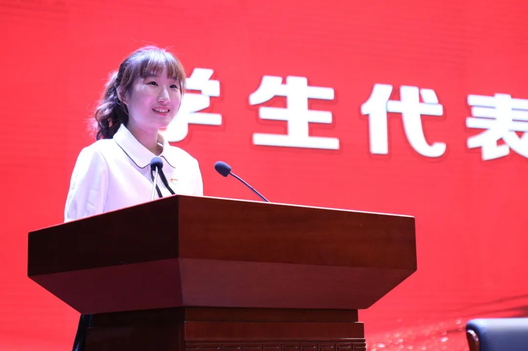 财经学院毕业生顾心语代表全体毕业生党员发言,她表示,要积极响应“到祖国和人民最需要的地方去”的号召,把青春挥洒的“小我”与融入祖国的“大我”结合起来,坚定仰望星空的青春理想,锤炼强国有我的使命担当。