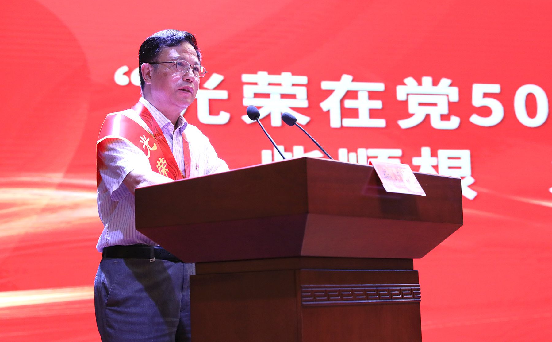 “光荣在党50年”党员代表,江南网页版官网纪委原书记、校关心下一代工作委员会常务副主任柴顺根同志发言,并带领新党员代表入党宣誓、全体党员代表重温入党誓词。
