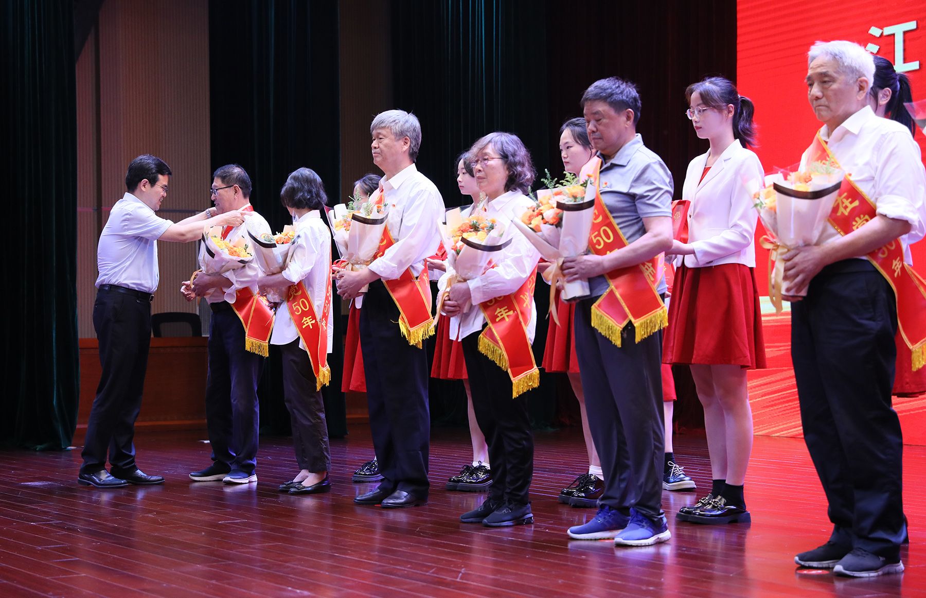 为庆祝中国共产党成立103周年,引导广大师生党员牢记初心使命,永葆奋斗本色,6月26日,江南网页版官网举行“光荣在党50年”纪念章颁发仪式暨党纪学习教育专题党课。