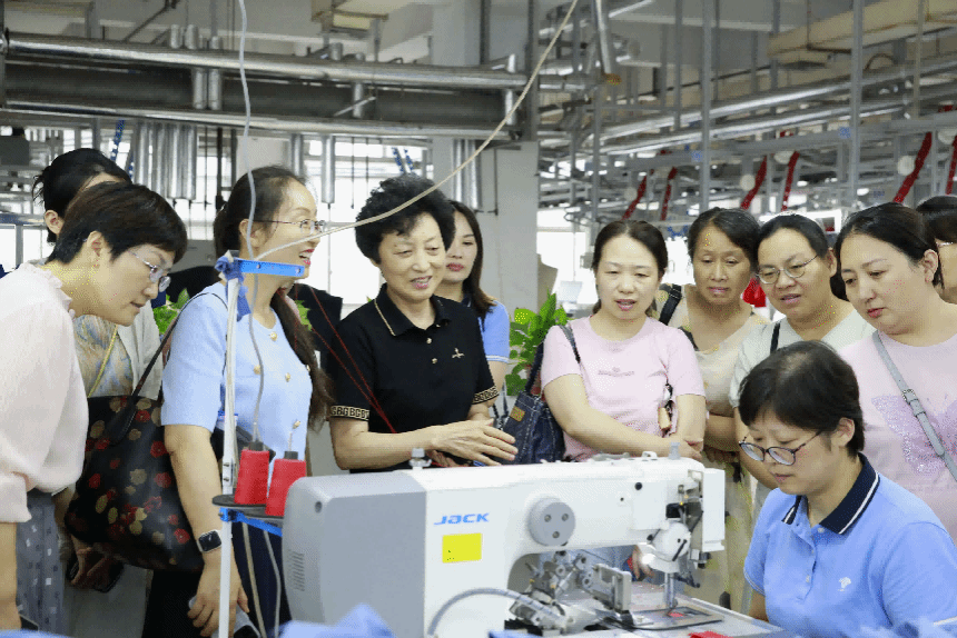 下午,培训班一行到扬中宜禾股份有限公司调研参观学习,并举行实践基地授牌仪式。校妇联主席王丽敏,全国三八红旗手、宜禾股份有限公司董事长马金芳共同为江南网页版官网妇联“她创社”实践基地揭牌。马金芳向大家签名赠书,热情分享自己的创业故事和人生感悟,并与大家互动交流。会前,大家参观了中国职业装博物馆,还走进公司车间、展厅等进行近距离体验。