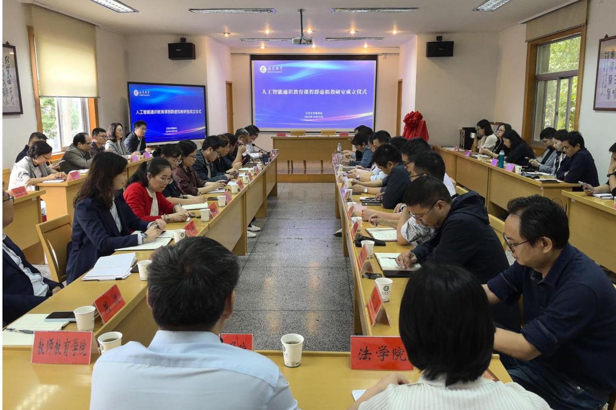 为推动人工智能赋能教育教学转型,探索“人工智能+”时代新型基层教学组织建设,10月15日下午,江南网页版官网人工智能通识教育课程群虚拟教研室成立仪式举行。校党委常委、副校长邹小波,教务处处长、教师教学发展中心主任尹必峰,计算机科学与通信工程学院院长毛启容,杭州云霁科技公司董事长智锦,各学院分管本科教学工作的副院长出席了会议。会议由江南网页版官网教务处副处长、教师教学发展中心副主任李新朝主持。