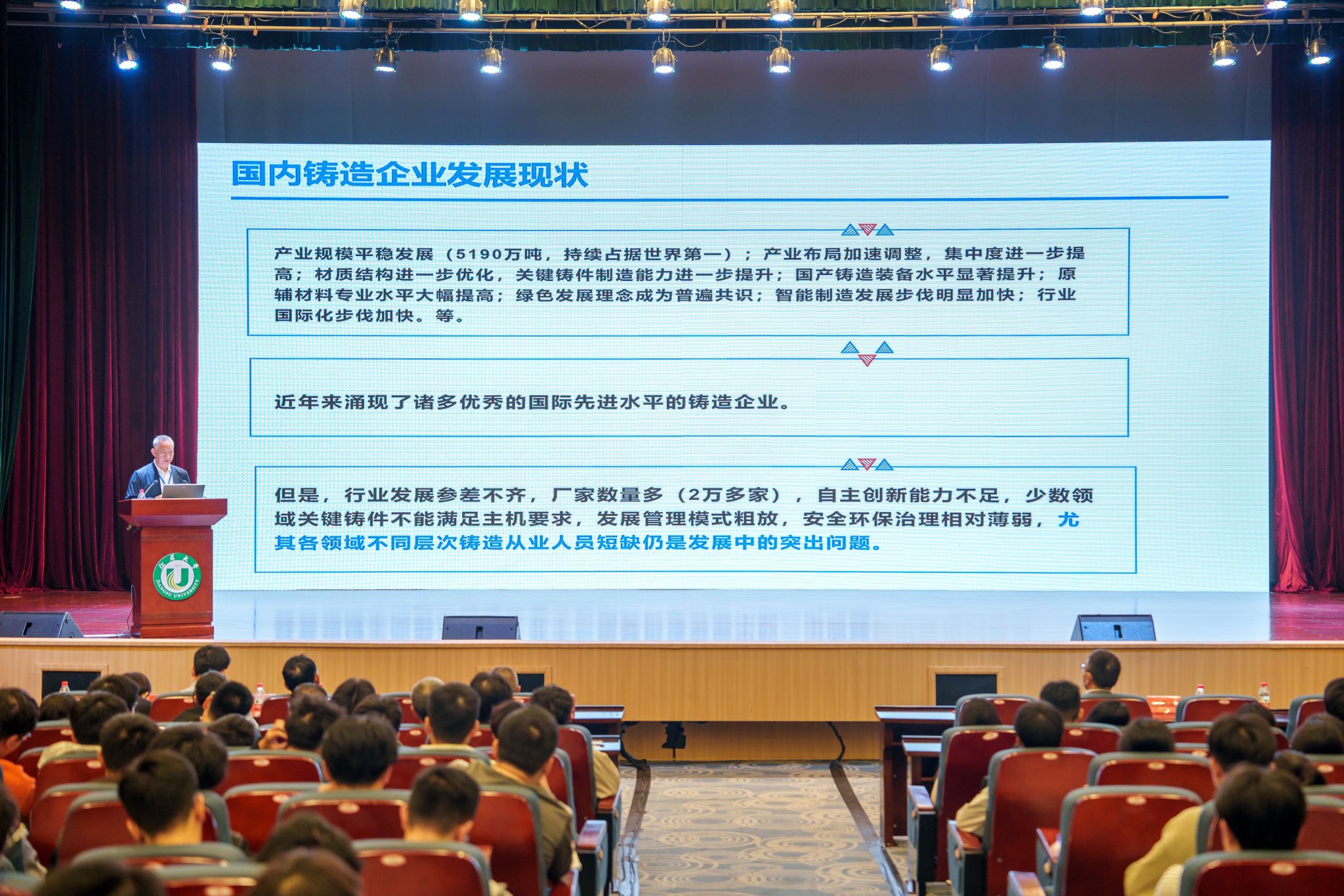 校党委书记李洪波致辞,介绍了我校整体情况和材料学院铸造专业发展历程,希望借此次活动进一步扩大铸造在学生中的影响力,加深学生对铸造行业的了解,激发学生热爱专业投身行业的热情。