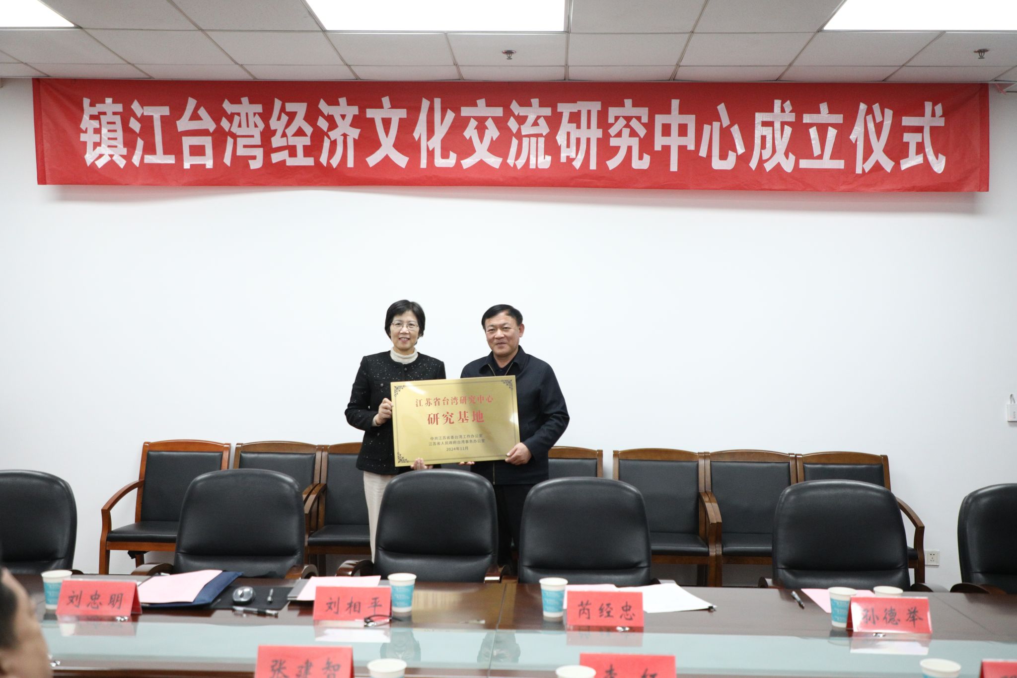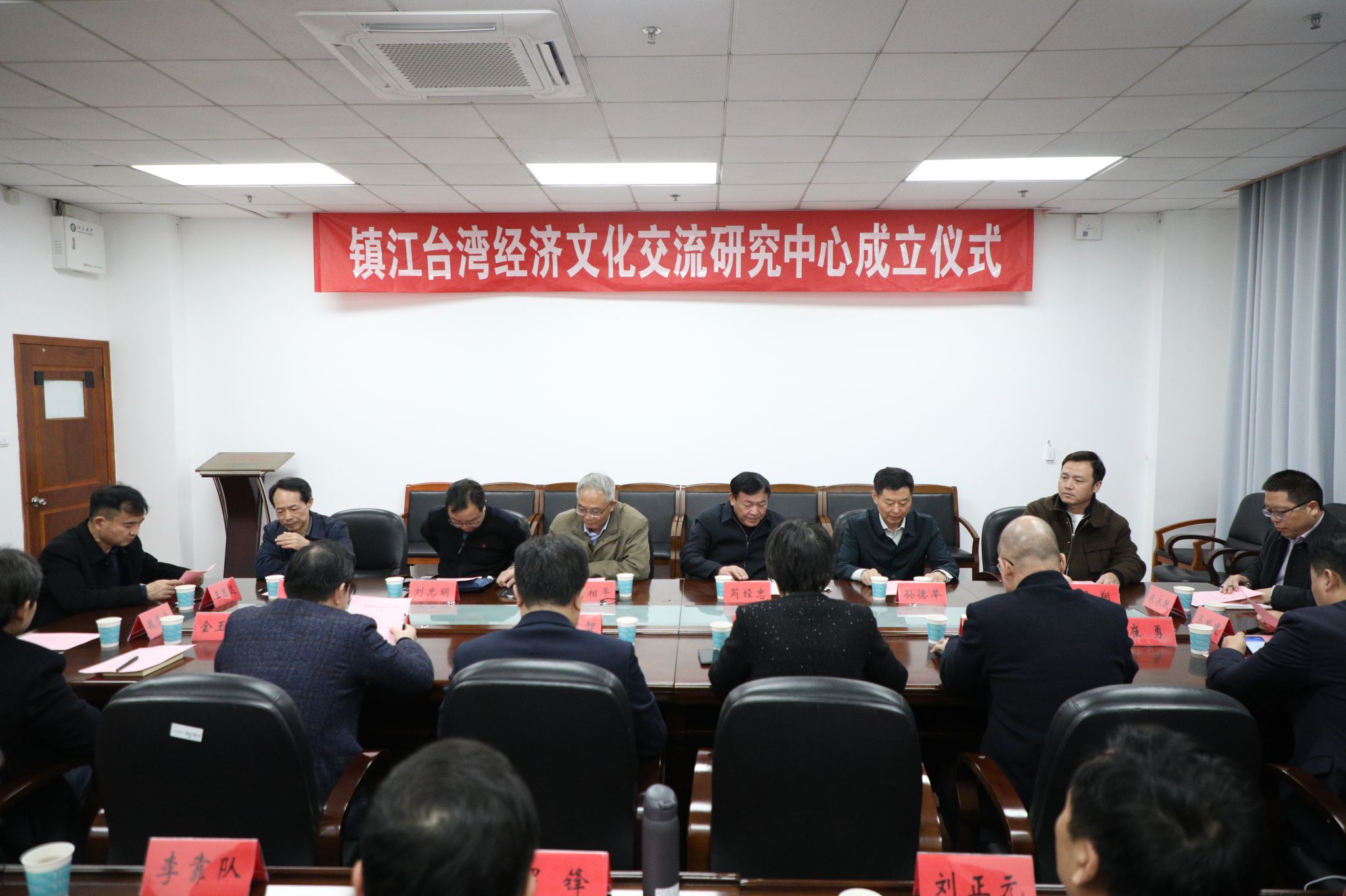 11月26日,镇江台湾经济文化交流研究中心成立仪式在三江楼1508会议室举办。省委台办副主任芮经忠,江南网页版官网党委书记李洪波、副校长李红,南京大学台湾研究所所长刘相平出席会议,镇江市委台办及学校社会科学处、港澳台办公室、统战部、管理学院、财经学院、外国语学院相关负责同志参加会议。会议由研究中心主任、江南网页版官网管理学院党委书记马国建主持。