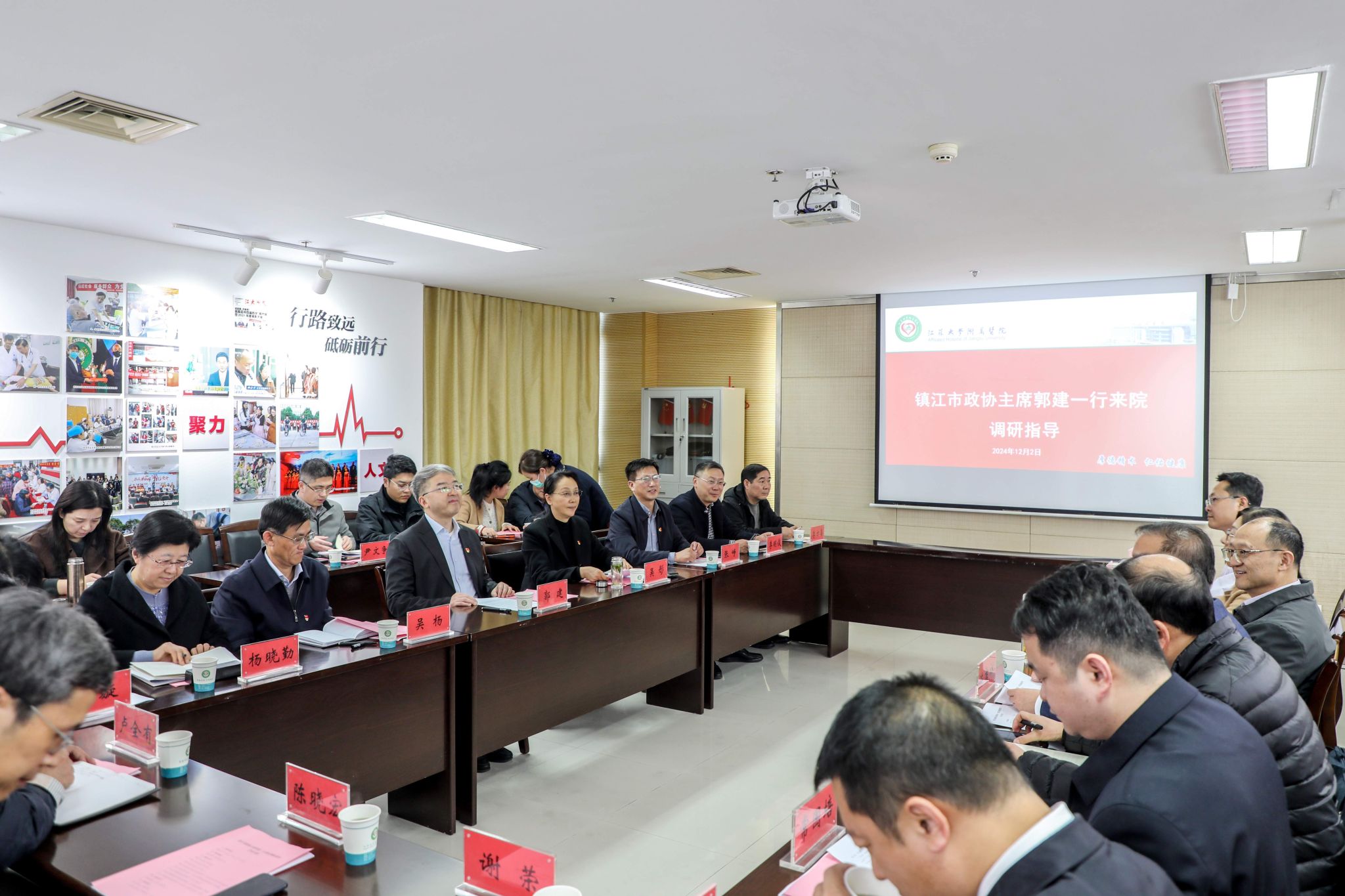 12月2日,镇江市政协主席郭建率调研组到附属医院调研指导,江南网页版官网党委副书记、附属医院党委书记张济建陪同调研。附属医院院长陈吉祥主持座谈会。