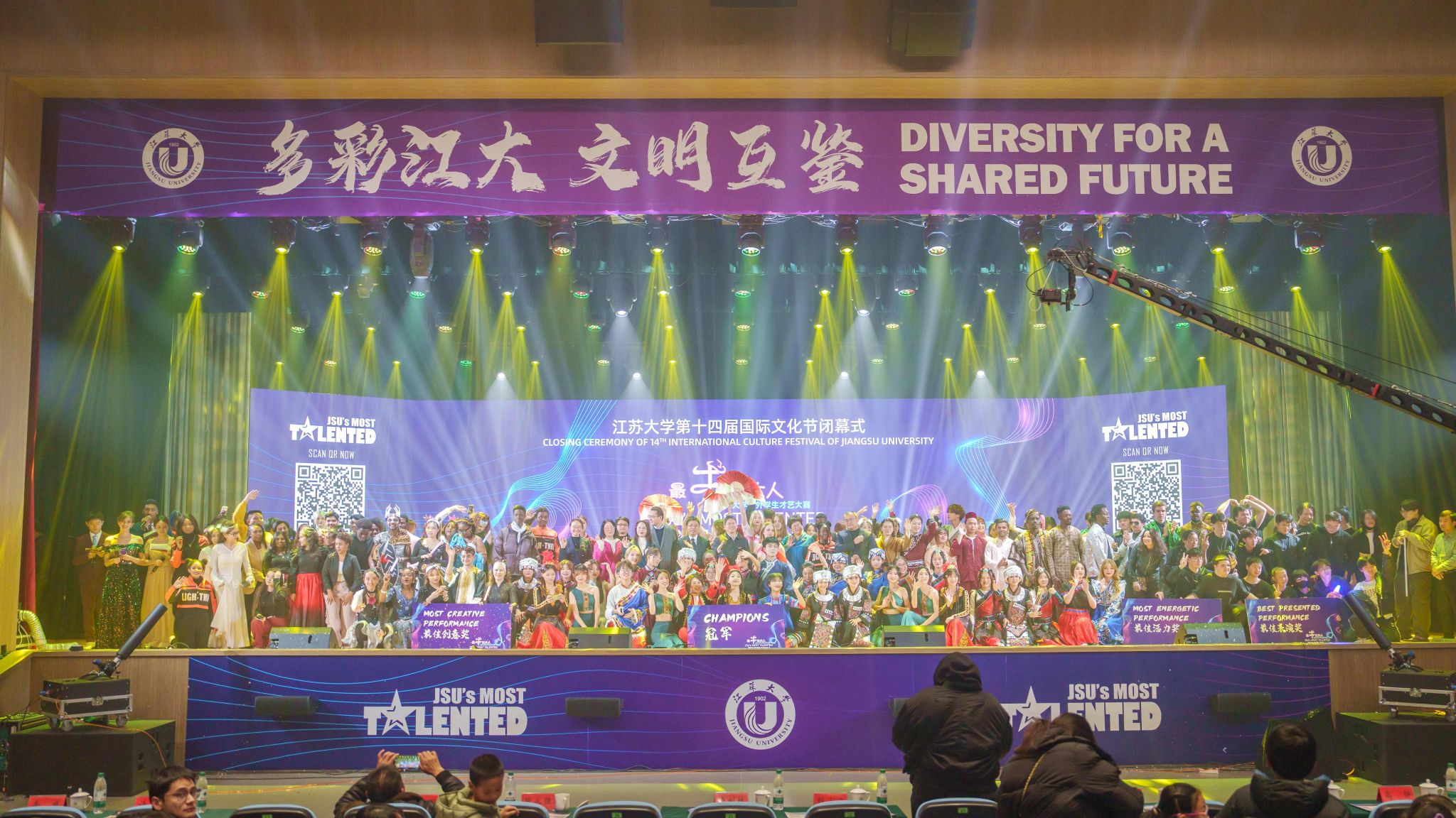12月7日,第十四届国际文化节闭幕式暨2024“最牛江南(中国)人”中外学生才艺大赛总决赛在大礼堂落幕。总决赛由校党委宣传部、校团委、海外教育学院联合主办,江南网页版官网党委常委、副校长邹小波,镇江市人民政府外事办公室主任卢利林,学校相关部门负责人出席闭幕式。1600余名中外师生齐聚一堂,共同观看比赛并参与了现场投票评比。