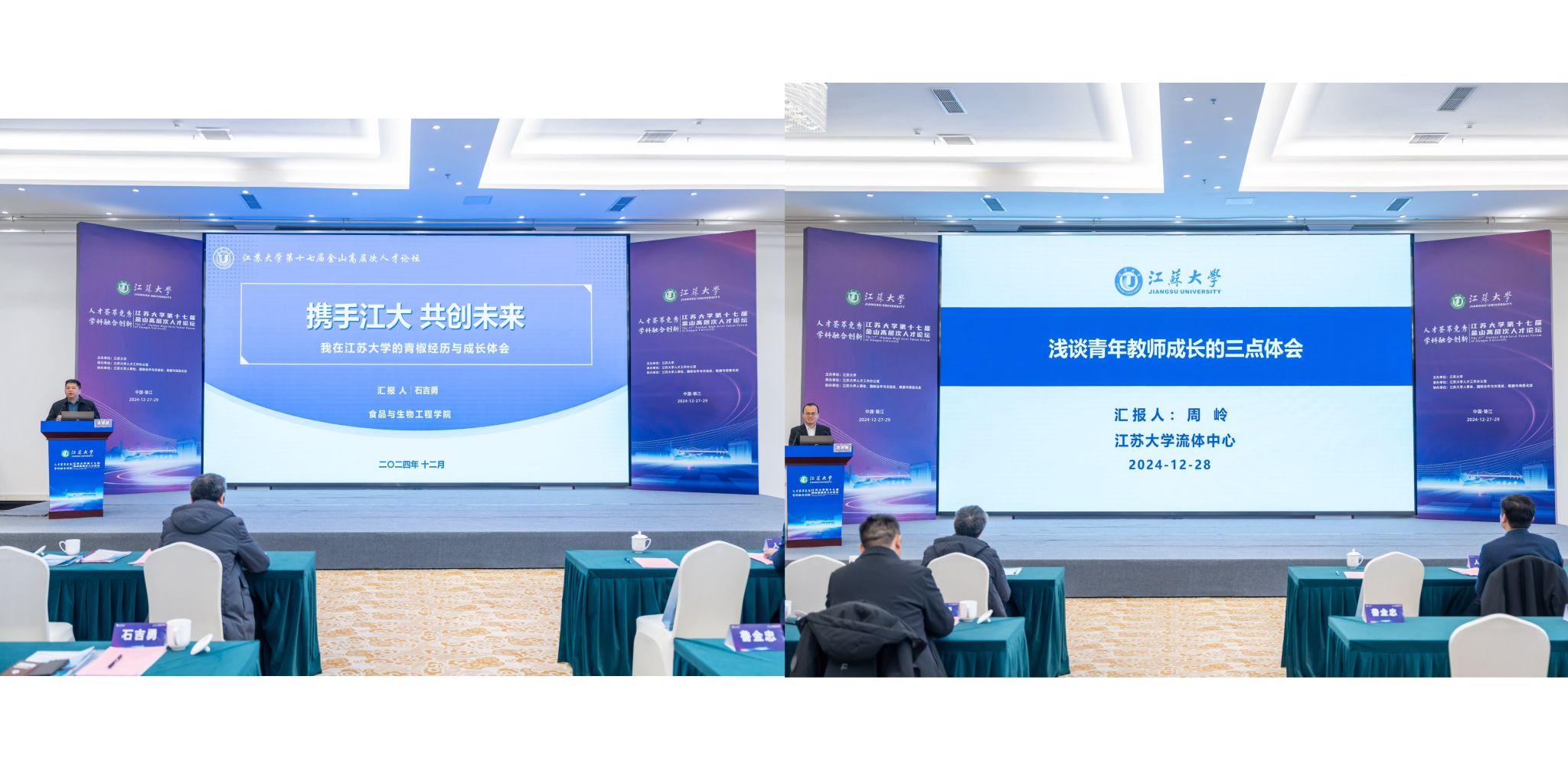 国家级青年人才、食品与生物工程学院副院长石吉勇作《携手江南(中国) 共创未来》主题报告。国家级青年人才、流体机械工程技术研究中心教授周岭作《浅谈青年教师成长的三点体会》主题报告,分享了自身成长路径和科研经历,为参会嘉宾起到示范作用。