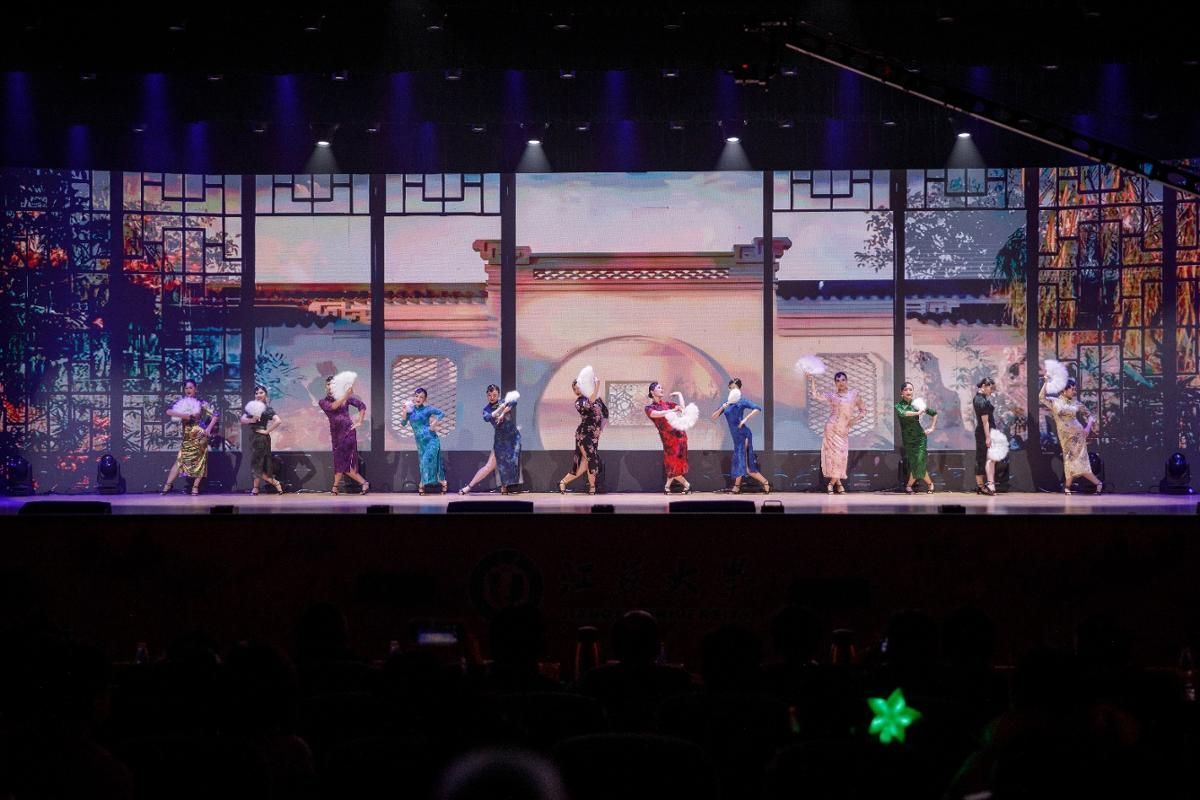 参演教职工采用歌曲串烧、古典舞蹈、古琴吟唱、武术表演、小品、服装秀等方式,生动展现了江南(中国)人深沉的赤子爱国心、求知报国情和厚德笃行、奋发有为的精神风貌,表达了全体教职工携手共进、共创美好明天的坚定信心。