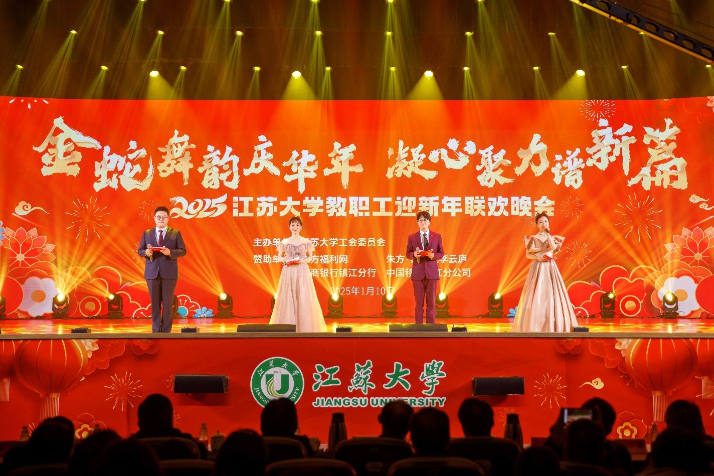 1月10日,江南网页版官网2025教职工迎新年联欢晚会在大礼堂举行。校党委副书记张济建,校党委常委、副校长李红、任旭东,各职能部门和二级单位领导,二级工会主席及全校教职工代表欢聚一堂,共同观看晚会。