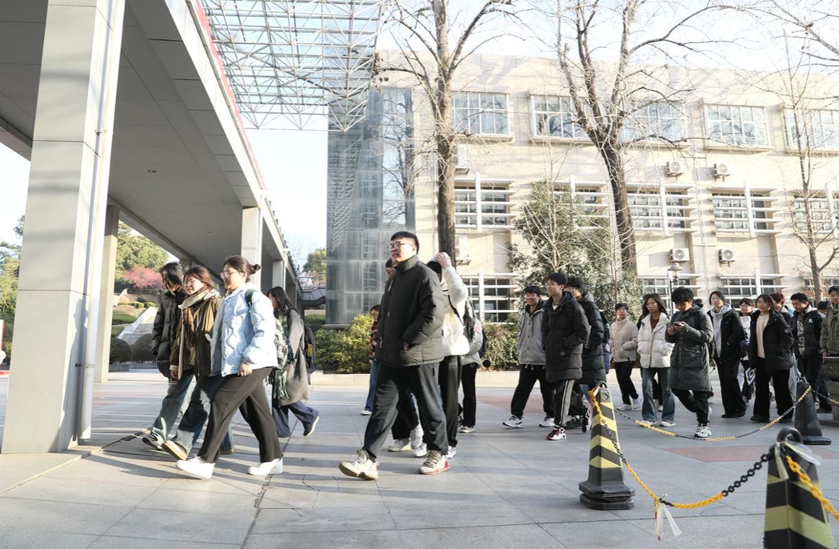 2月17日上午,新学期升国旗仪式在东山操场举行,校领导前往各教学楼栋检查教学秩序。开学第一天,校园井然有序、生机盎然。