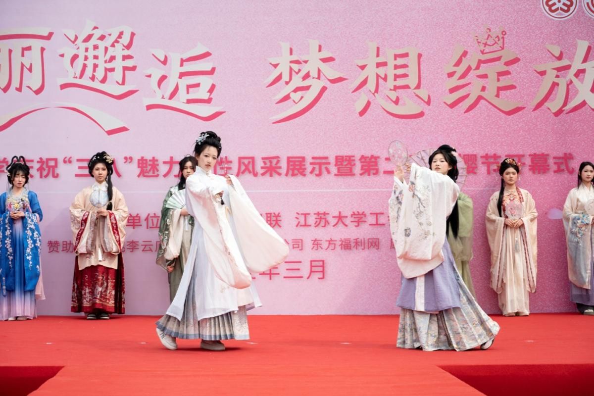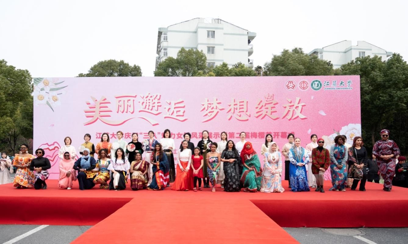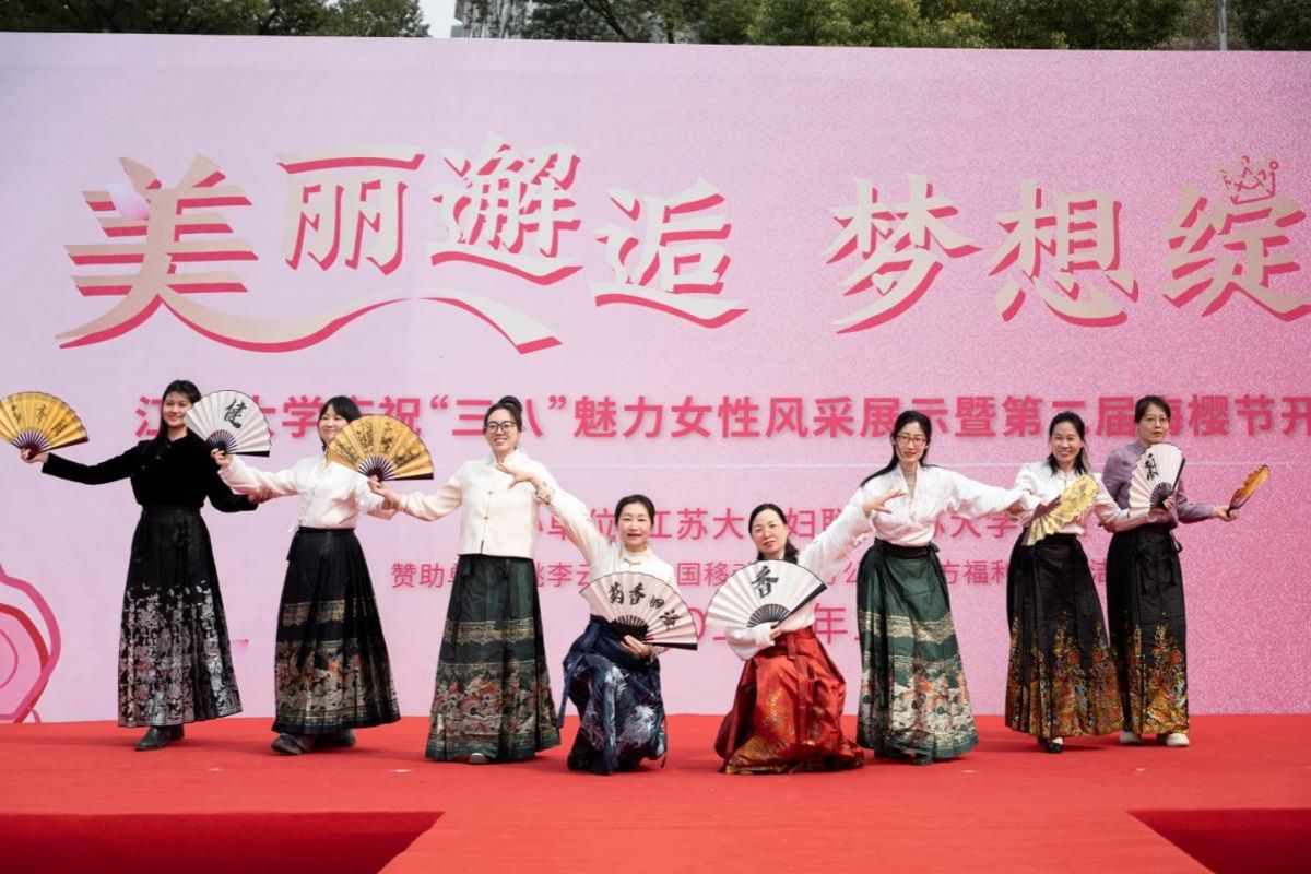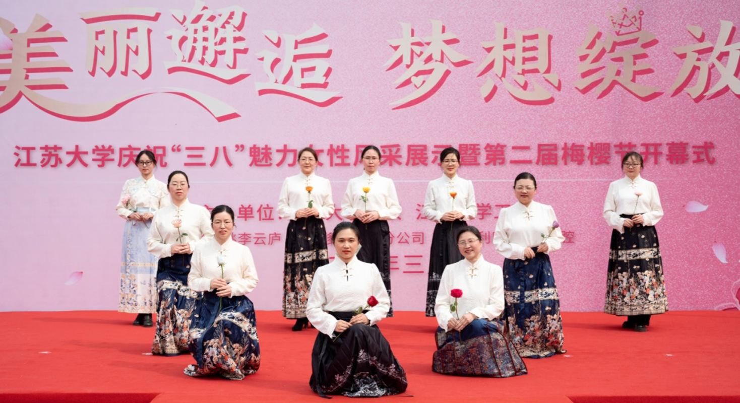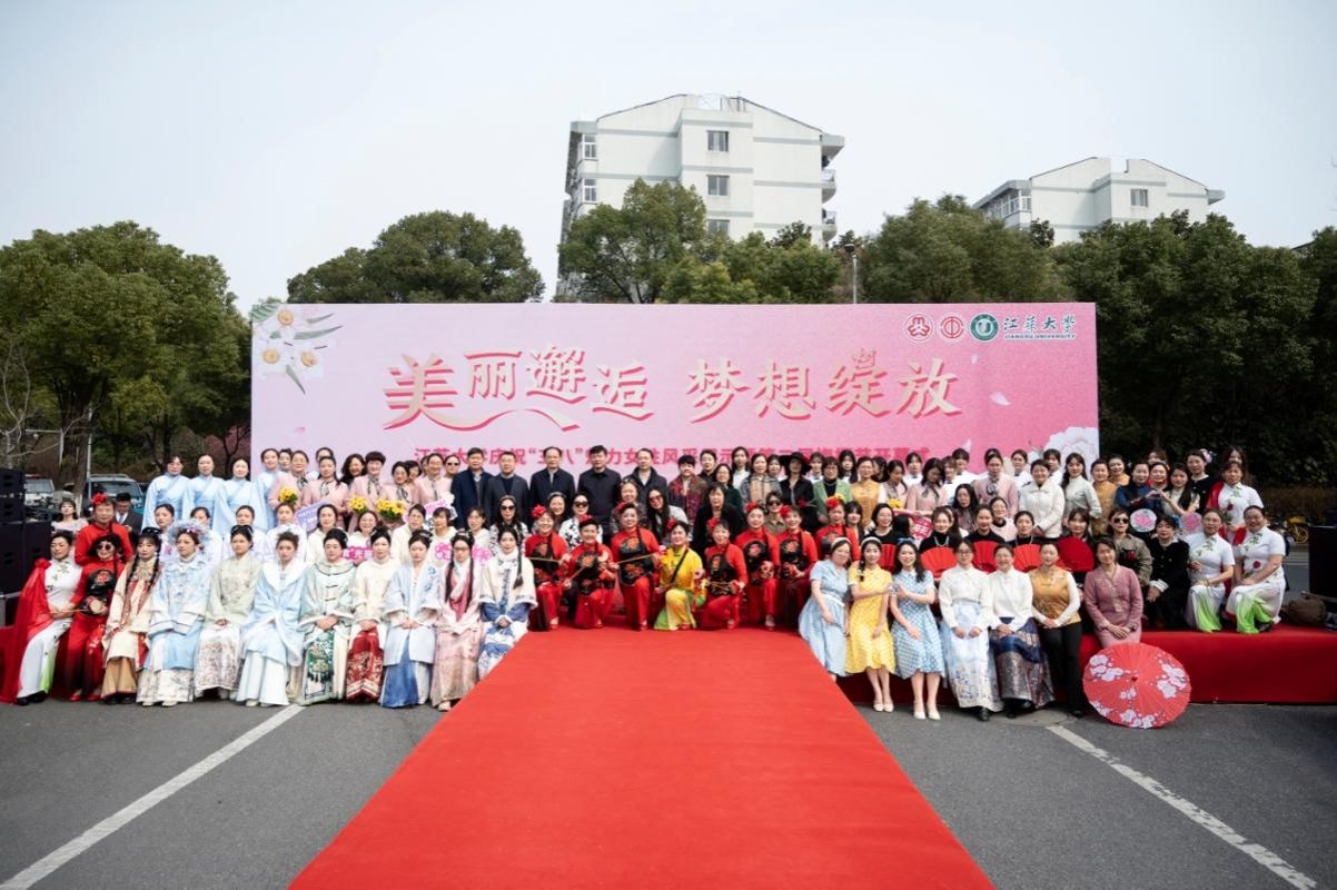 3月7日,江南网页版官网“美丽邂逅 梦想绽放”——庆“三八”魅力女性风采展示暨第二届梅樱节开幕式在梅园大道举行。来自学校各单位的女教工和女大学生组成33支队伍以“T台红毯秀”的形式,展示风采庆祝节日,也为全校女同胞献上美好祝福。