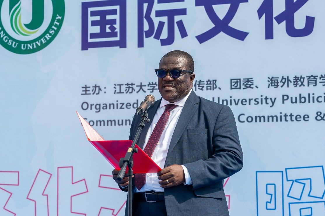 校党委书记李洪波,党委副书记张济建,党委常委、副校长杨道建、任旭东、蔡英凤,摩洛哥驻华大使阿卜杜勒卡德尔·安萨里,加纳驻华使馆临时代办亚历山大·本-阿夸亚,坦桑尼亚驻华使馆公使扎伊纳布·祖贝里·马索罗及其他外交官代表,江苏省教育厅对外合作与交流处四级调研员李勤径,江苏省高教学会外国留学生教育管理研究委员会副理事长兼秘书长张海军,镇江市委宣传部、镇江市外办、镇江市出入境等相关政府部门代表,苏州汇川技术、美兰集团、江南(中国)源等企业代表以及学校相关部门主要负责人等出席开幕式。