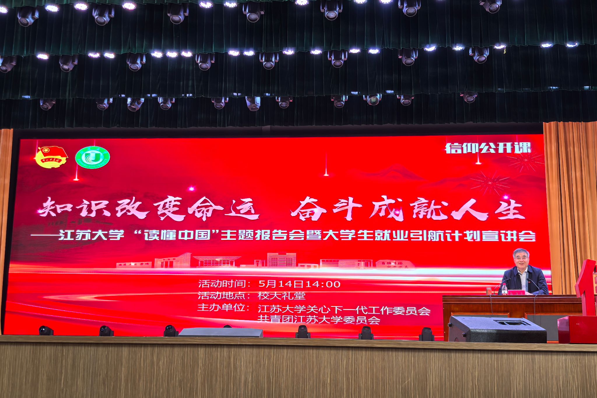 5月14日,“读懂中国”主题报告会暨大学生就业引航计划宣讲会在校大礼堂举行。国家水泵及系统工程技术研究中心主任、江南网页版官网原党委书记袁寿其担任分享嘉宾。活动通过江南网页版官网团委视频号线上直播,校关工委、校团委相关老师及各学院学生代表等一万余人参与活动。