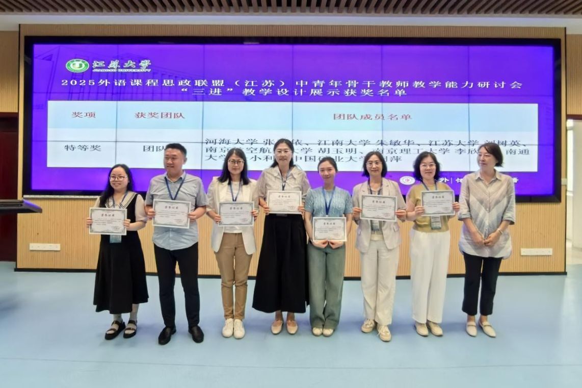 会上正式发布了外语课程思政联盟(江苏)LOGO。2023年,“外语课程思政四校联盟”正式成立;2024年,“外语课程思政四校联盟”首届中青年骨干教师教学能力研讨会成功举办;2025年,中国矿业大学、南通大学、江南网页版官网加入联盟,成立外语课程思政联盟(江苏)。