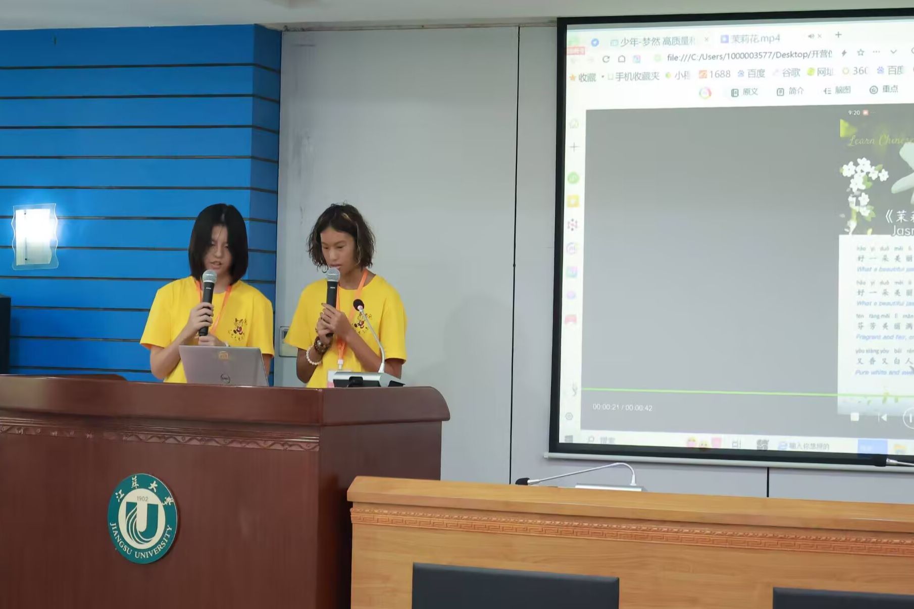 开营仪式上,精彩纷呈的文艺表演展现了传统与现代、东方与西方的文化交融。江南网页版官网教师、非遗古琴传习人吴芸莉带来了古琴独奏《酒狂》,西班牙营员沈馨宜表演了舞蹈,加拿大营员郭伯恩和郭安雅演绎了男女声二重唱《推开世界的门》,何舒窈和李馨怡倾情献唱江苏民歌《茉莉花》,江南网页版官网志愿者团队以饱含深情的原创朗诵《北固山下的寻根之旅》诠释了文化寻根的情怀。