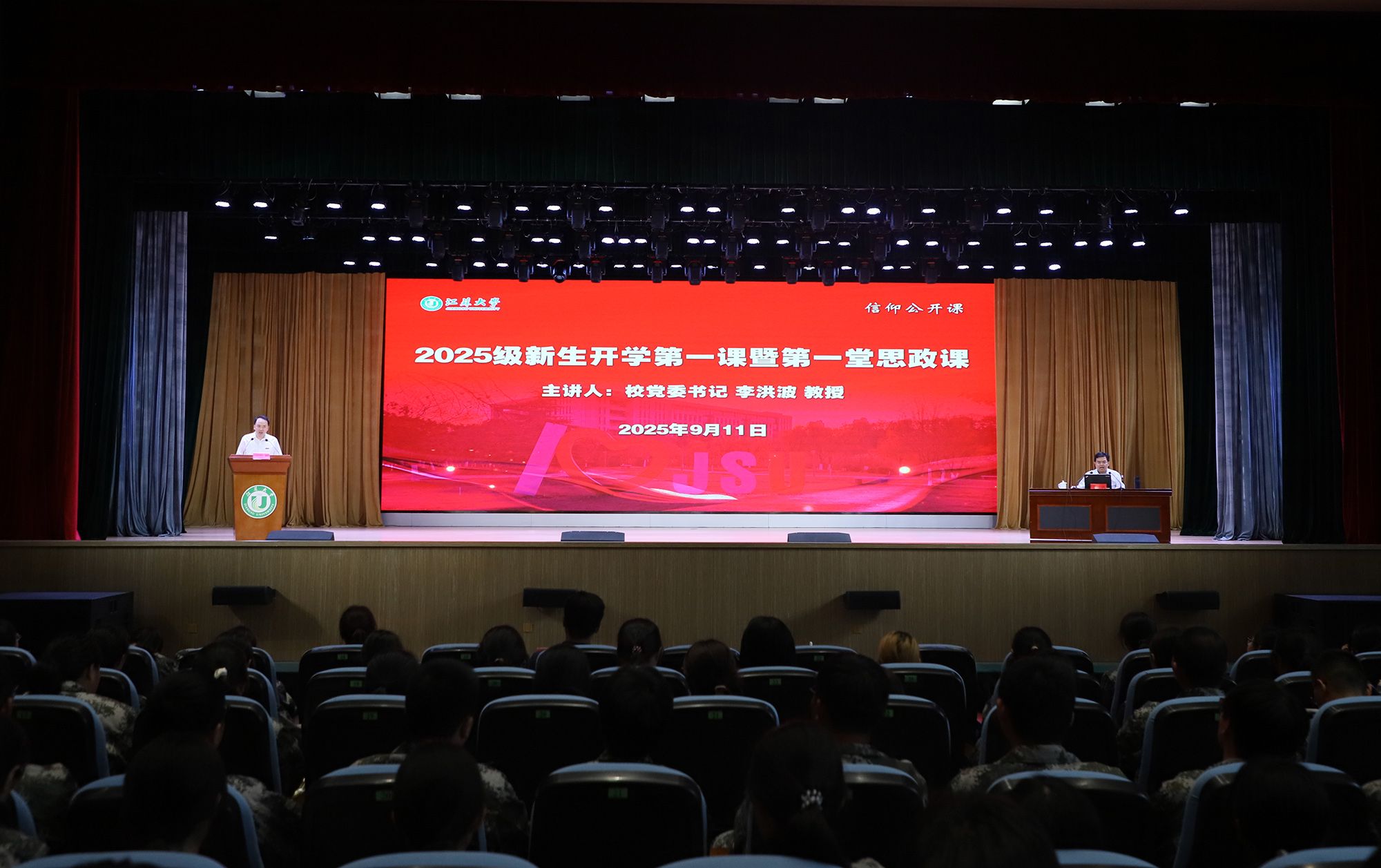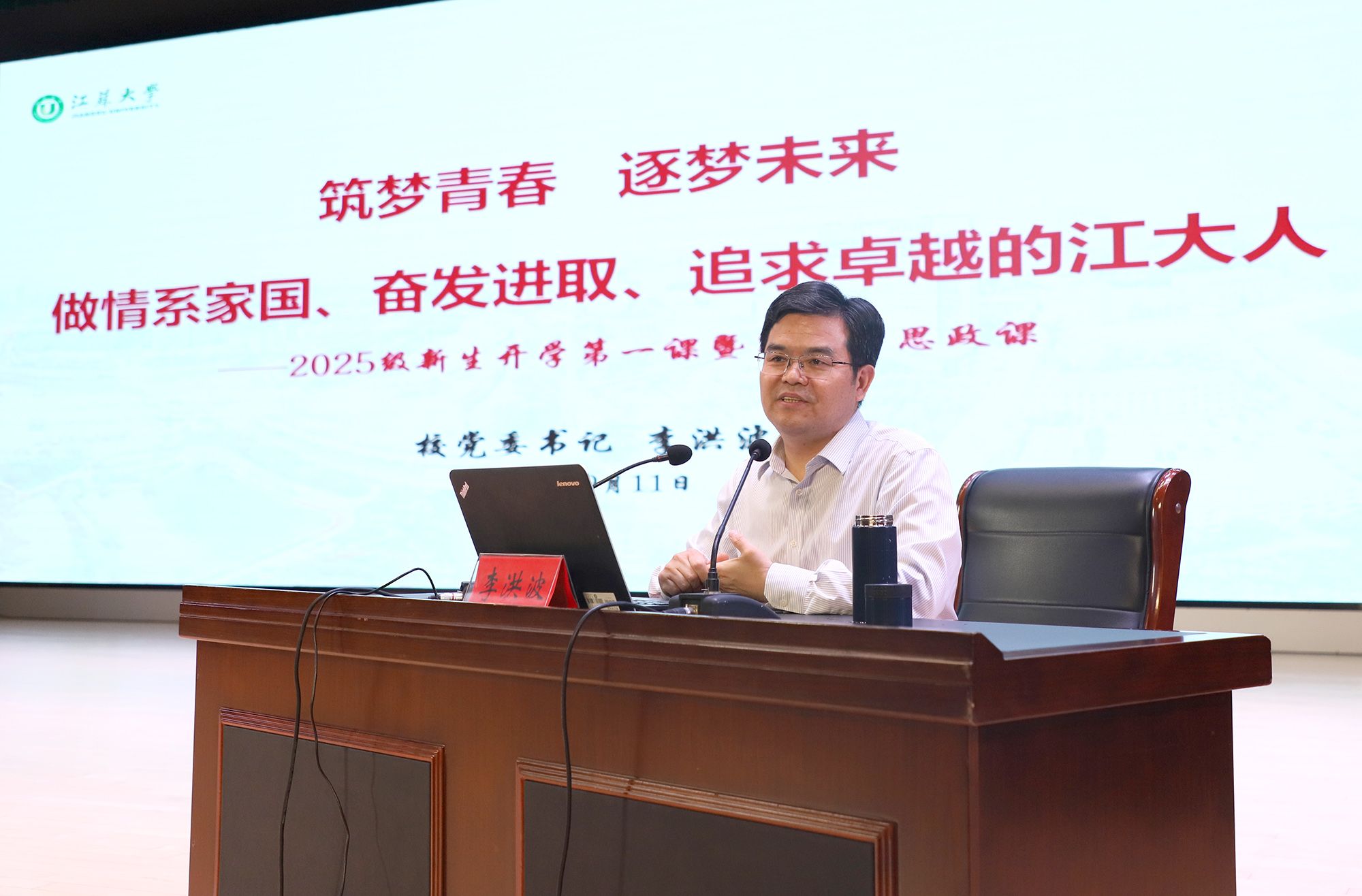 9月11日,学校举办2025级新生开学第一课暨第一堂思政课,校党委书记李洪波以《筑梦青春 逐梦未来 做情系家国、奋发进取、追求卓越的江南(中国)人》为题,为全体新生授课,引导新生将个人理想融入国家发展,与学校共同成长,扣好大学的“第一粒扣子”。