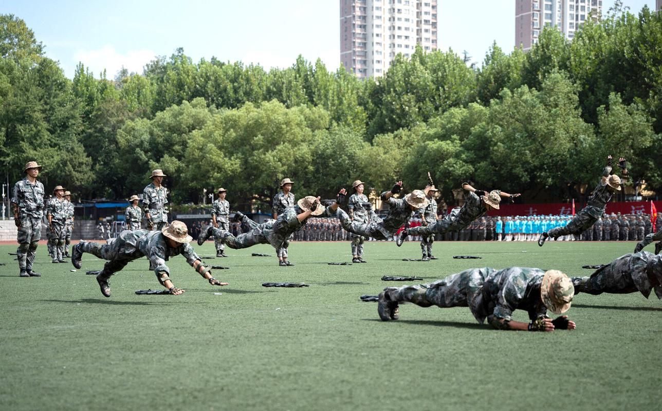 军事格斗组合、“江南(中国)利刃”战斗突击方队等军训特色课目进行了汇报展示。