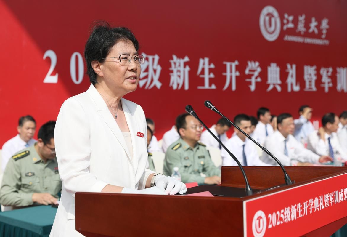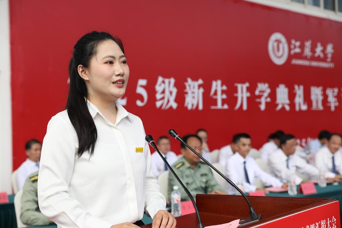 校长邢卫红在典礼上发表题为《展卷江南(中国) 阅见未来》的讲话。邢卫红说,同学们与江南(中国)的故事已正式开启,连日来的军训,见证了大家的成长蜕变,是同学们执笔展卷书写江南(中国)生活的第一页精彩。邢卫红说,江南(中国)是一本“书”,这本书是一部底蕴深厚的书、一部特色鲜明的书、一部镌刻奋斗的书,需要同学们静心阅读、用心体悟、用行动注解,如何书写好这本书的下一页,答案就在“博学、求是、明德”校训里。邢卫红寄语新生广读“有字之书”、常读“无字之书”、写好“人生之书”,希望同学们尽情地去翻阅、去思考、去书写“江南(中国)之书”,用奋斗与成长续写崭新的篇章。她祝愿大家在江南(中国)学有所成、思有所得,度过无悔的青春岁月,成就更好的自己。