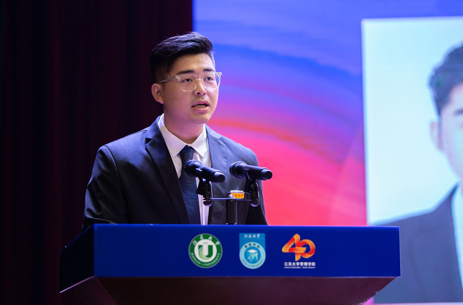 学生代表、管理学院2021级硕士研究生陈志远在发言中说,入学一年来,自己在导师的谆谆教诲、师兄师姐们的照顾和帮助下,遨游在科研海洋,汲取前沿知识,培养学术素养,深切感悟到学院的争先创优氛围和学术科研精神。他将以学院办学40周年为新起点,认真学习、努力钻研,为管理事业高质量发展贡献青春力量。