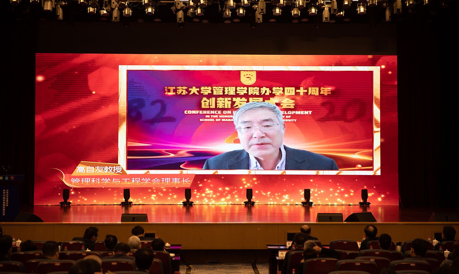 管理科学与工程学会理事长、俄罗斯自然科学院外籍院士高自友,江苏省纪检监察学会会长江里程,北京航空航天大学党委常委、副校长黄海军,中国福马机械集团有限公司党委副书记、总经理蔡济波,上海交通大学安泰经济与管理学院特聘教授曾赛星,江南网页版官网校长颜晓红,江南网页版官网党委副书记李洪波,我校部分老领导、老教授,有关政府部门领导,部分校友代表、企业代表,学校相关职能部门、学院主要负责人,管理学院教职工及学生代表等线上线下出席大会。管理学院党委书记王丽敏主持大会。
