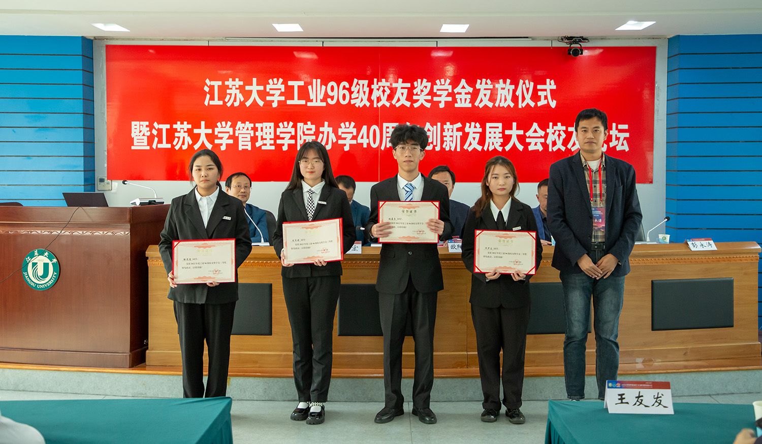 论坛上还举行了工业96级校友奖学金发放仪式。