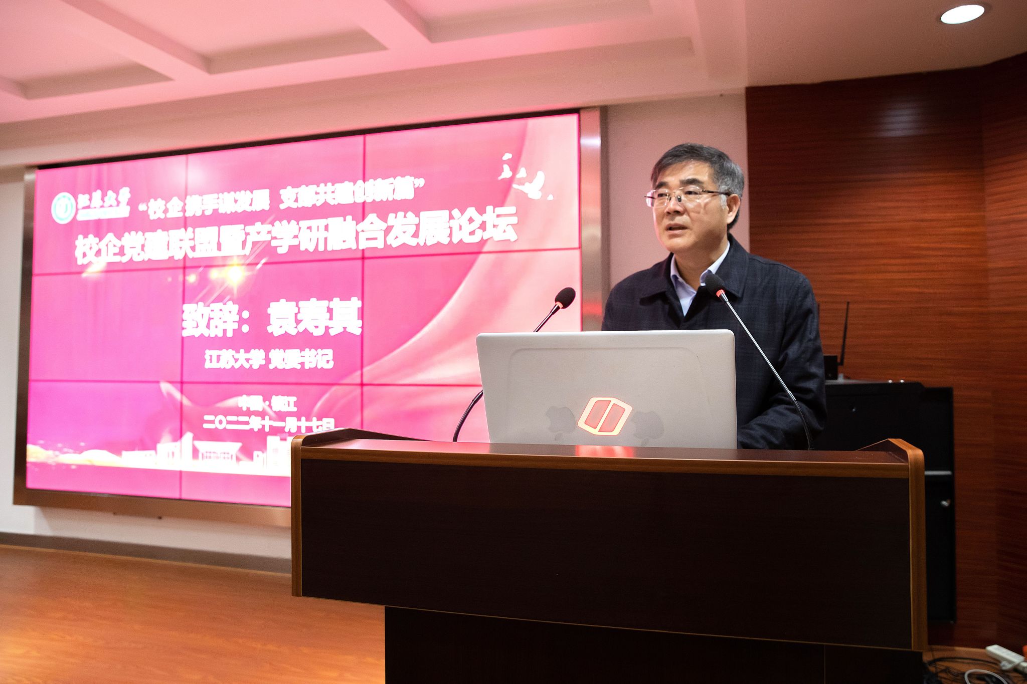 11月17日,能源研究院联合中汽研汽车检验中心(常州)有限公司、总参第六十研究所、凯龙高科技股份有限公司、中节能太阳能科技(镇江)有限公司和江苏美科太阳能科技股份有限公司在江南网页版官网举办“校企携手谋发展,支部共建创新篇”校企党建联盟及产学研融合发展论坛。校党委书记袁寿其出席论坛并致辞。