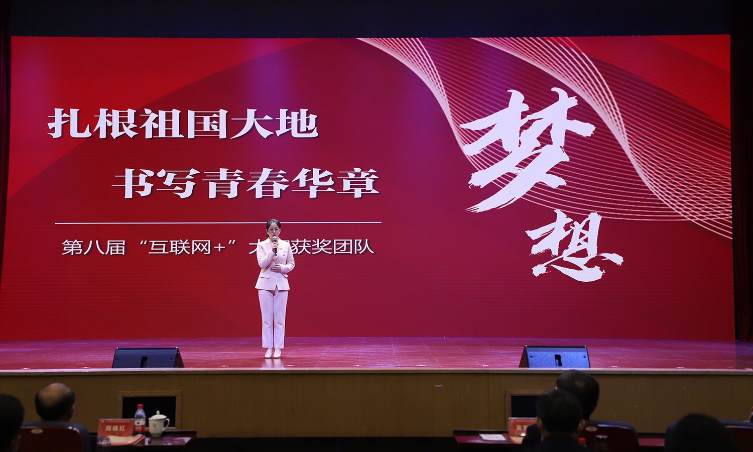 会上,第八届中国国际“互联网+”大学生创新创业大赛金奖获奖团队代表、农工学院农业工程专业2022级博士研究生姚梦娇,“博学”校长奖章获得者、第一临床医学院临床医学专业2018级本科生陆定坤,省级先进班集体获奖代表、电气学院电气(卓越)1901本科生王笔谈,2022年校社会实践活动十佳团队代表、伯黎支教团队员辛会会分别作主题分享。