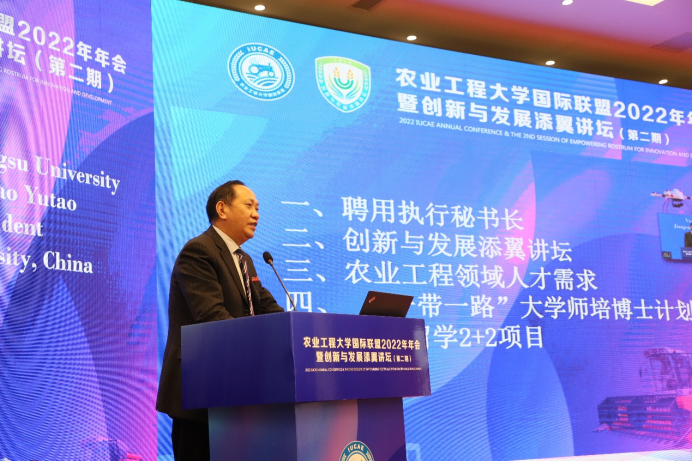 副校长赵玉涛代表联盟理事长单位江南网页版官网宣布聘用孙建中教授为执行秘书长,推出创新与发展添翼讲坛,发布江南网页版官网在农业工程及相关领域的合作信息和人才需求,并重点介绍我校开展的“一带一路”师资培养博士计划和来华留学2+2项目。