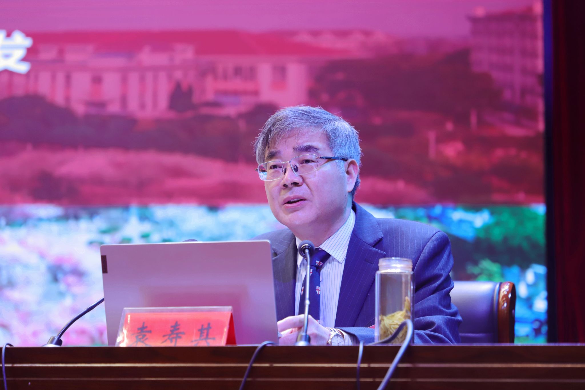 袁寿其以《汇聚力量 乘势而上 以党的二十大精神引领学校事业更高质量发展》为题,从“深刻领会党的二十大精神,凝心聚力、培根铸魂,打牢思想根基”“准确把握科教兴国重大战略,汲取力量、面向未来,把稳奋斗方向”“全面贯彻落实党的二十大精神,团结奋斗、实干笃行,推动学校事业更高质量发展”三个方面为师生讲授了一堂意义深刻的思政课。他强调,全体师生要深刻领会党的二十大精神,落实好立德树人根本任务,坚守为党育人、为国育才使命;走好新时代人才自主培养之路,全面提高人才培养质量;推动实现科技自立自强,加快农机特色高水平大学建设。他要求广大师生员工树牢理想、满怀信心,坚定共产主义信仰,敢于实践、勇于亮剑,矢志奋斗、不负使命,汇聚力量、乘势而上,铸牢事业发展厚实根基。