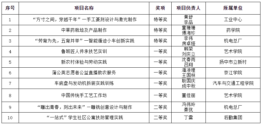 近日,2022年江苏省高等学校劳动教育优秀实践项目评选结果公布。我校共有10个劳动教育实践项目获奖,其中特等奖3项、一等奖5项、二等奖2项,学校荣获优秀组织奖,获奖数量位居全省高校首位。