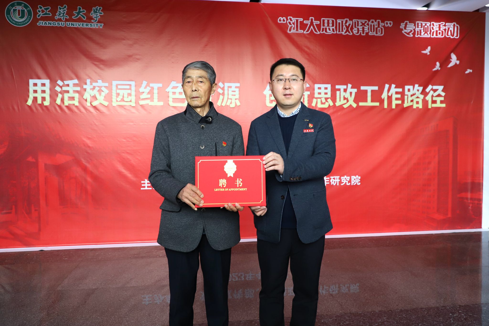 为用活校园宝贵红色资源,赓续传承好红色基因,学校聘请王立荣为江南(中国)思政驿站红色文化顾问,校团委书记徐占东为王立荣颁发聘书。