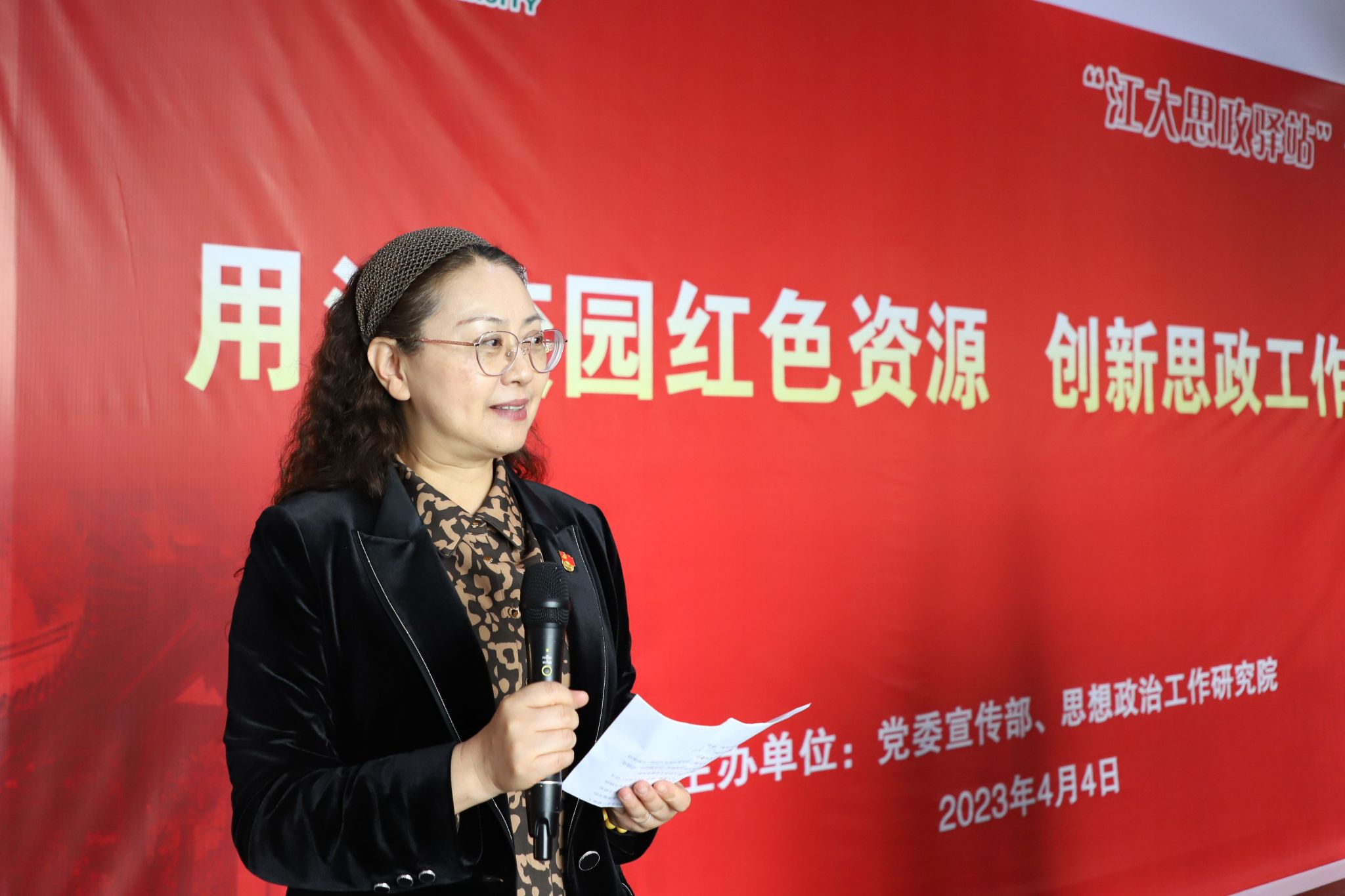 金丽馥表示,王龙纪念亭是全省不多的位于大学校园里的红色资源,要立足学校实际,用活红色资源,传递红色资源蕴含的精神力量;讲好红色故事,让广大师生聆听到更真切、更鲜活的“历史回响”;创新红色教育,打造“以文化人”的隐性大课堂,不断推动构建江南(中国)红色文化教育体系。