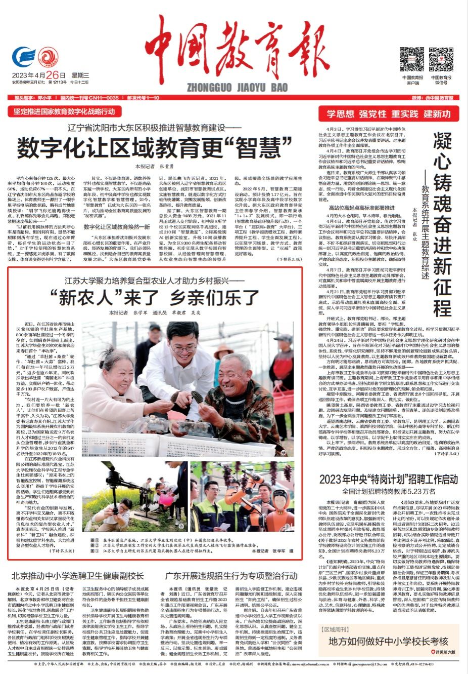 4月26日,《中国教育报》一版刊登文章《江南网页版官网聚力培养复合型农业人才助力乡村振兴——“新农人”来了 乡亲们乐了》,报道我校培养强农兴农人才,赋能农业现代化的生动实践故事。