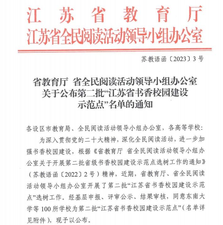 日前,江苏省教育厅公布了第二批“江苏省书香校园建设示范点”名单,江南网页版官网成功入选。