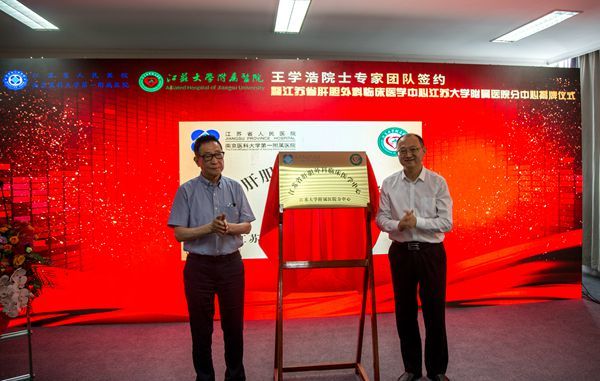 王学浩和校党委常委、副校长、附属医院党委书记张济建共同为江苏省肝胆外科临床医学中心江南网页版官网附属医院分中心揭牌。